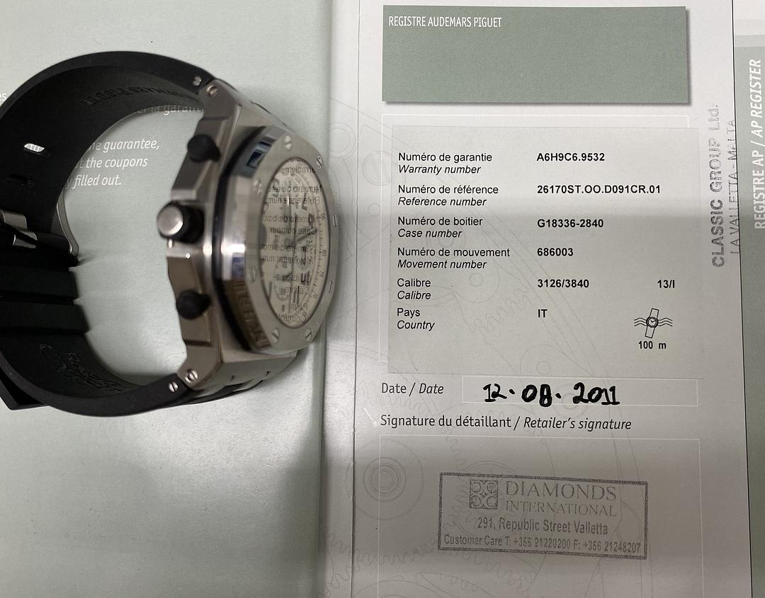 Audemars Piguet Royal Oak Offshore Safari White Dial on Rubber Ref 26170ST with Papers 2011