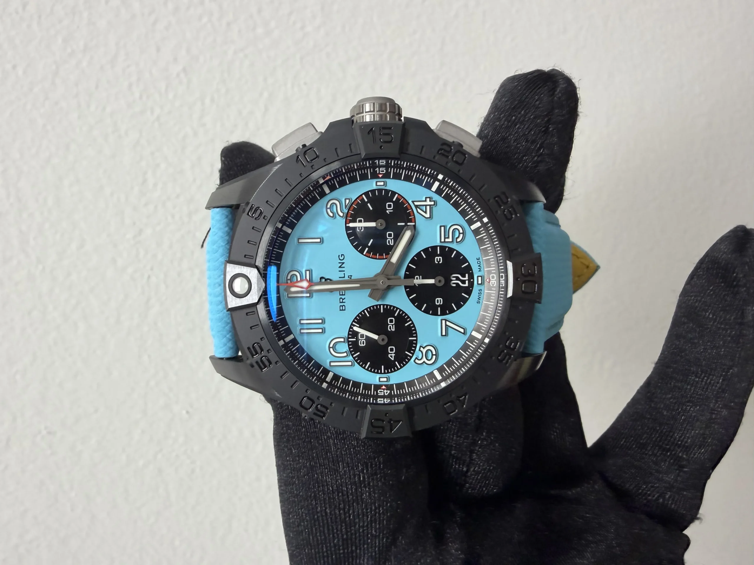 Breitling Avenger B01 Chronograph Turquoise Dial on Turquoise Leather Ref SB0146101L1X1
