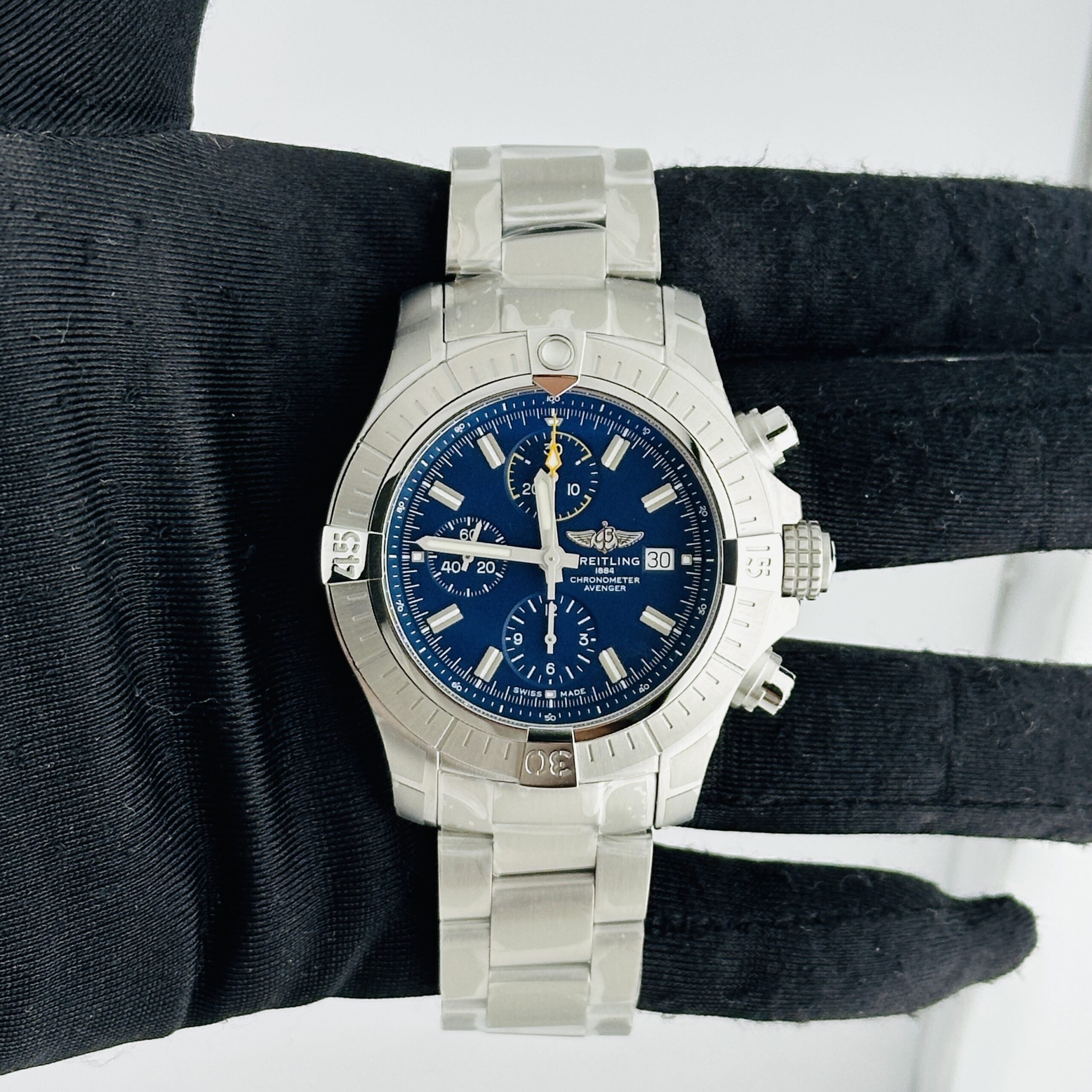 Breitling Avenger Chronograph Blue Dial on Bracelet Ref A13317101C1A1 with Card 2023