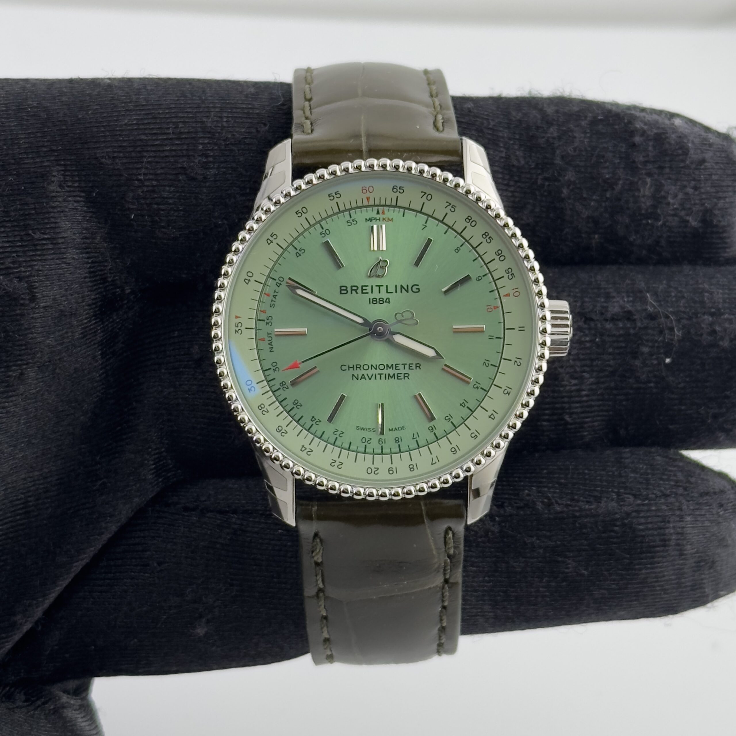 Breitling Navitimer Automatic B/P Mint Green Dial on Leather Strap Ref A17395 with Card 2024