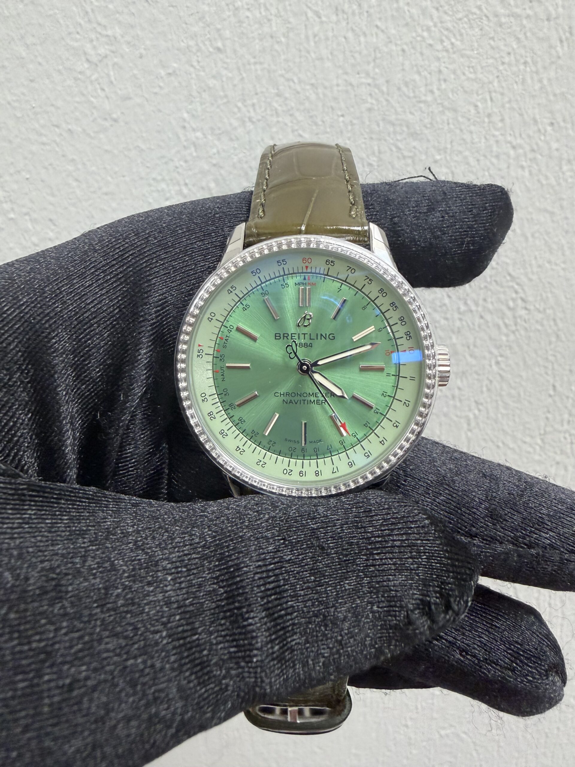 Breitling Navitimer Automatic Mint Green Dial on Leather Strap Ref A17395361L1P2 with Card