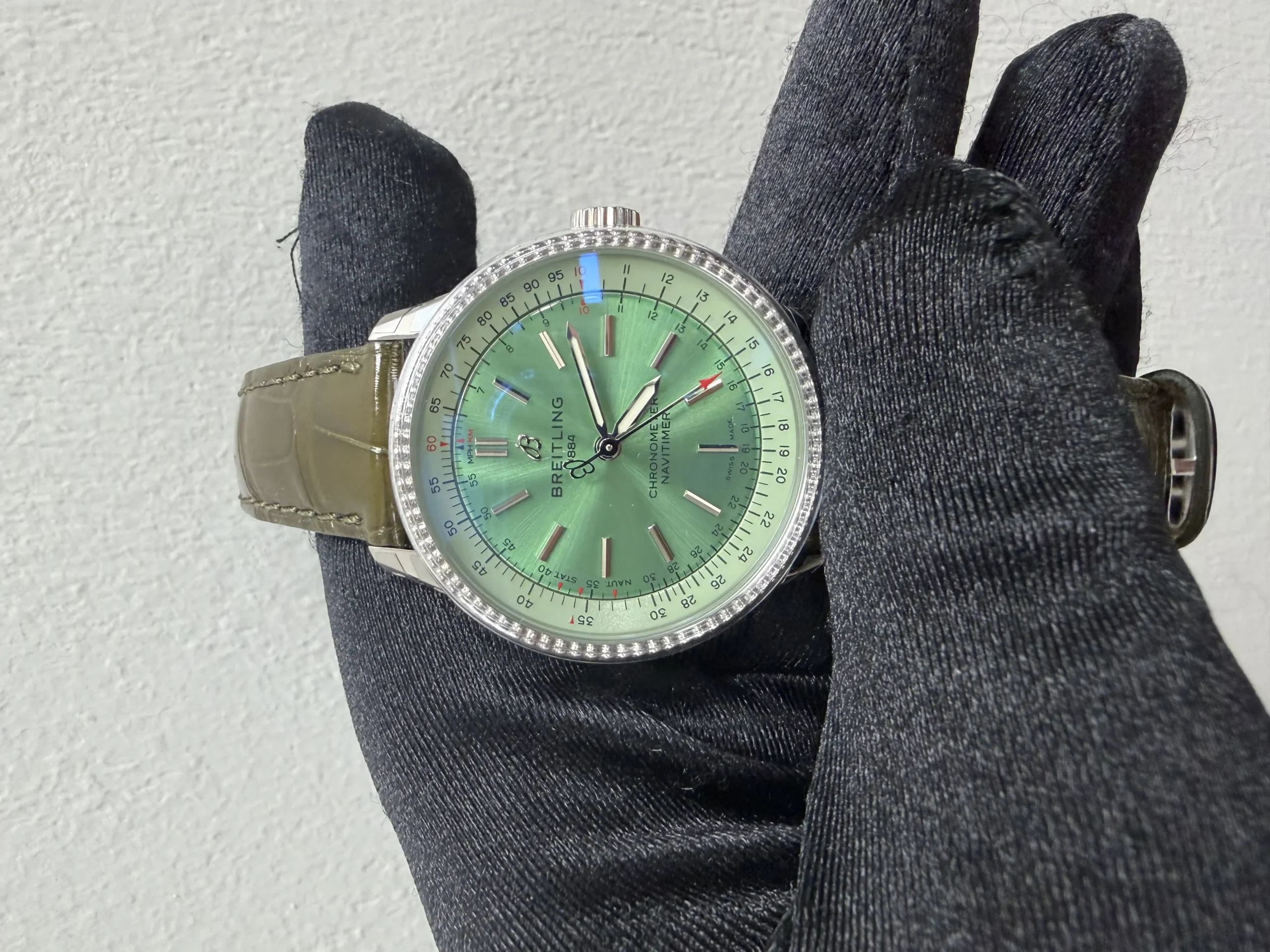 Breitling Navitimer Automatic Mint Green Dial on Leather Strap Ref A17395361L1P2 with Card
