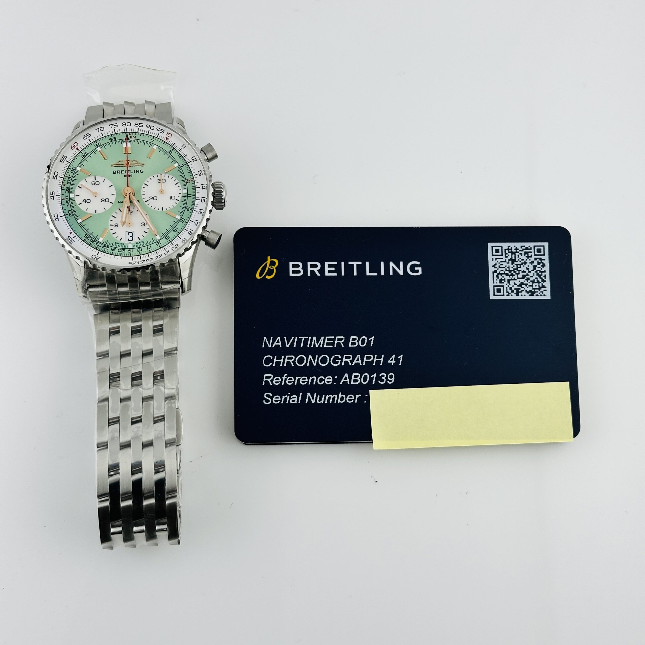 Breitling Navitimer B01 Chronograph Mint Green Dial on Bracelet Ref AB0139211L1A1 with Card 2025