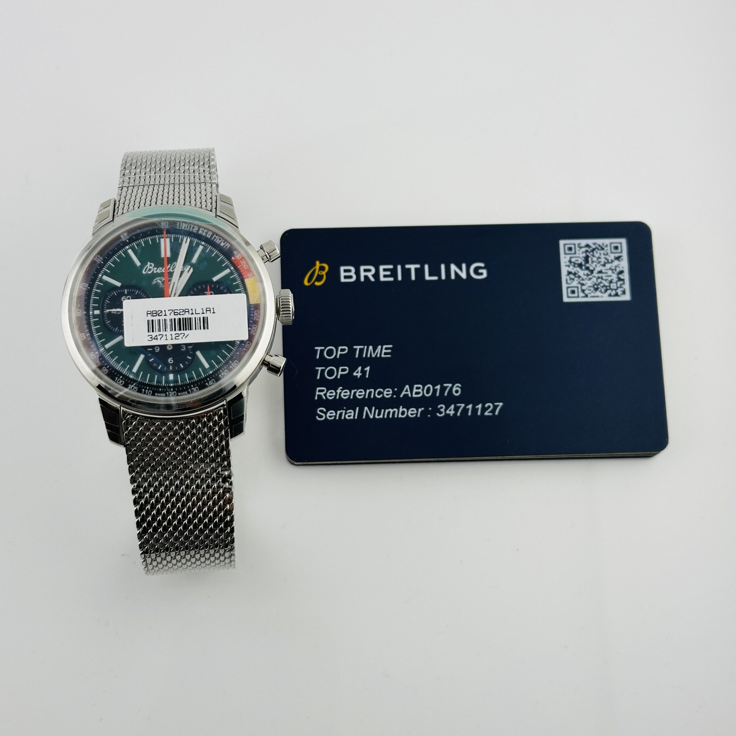 Breitling Top Time B01 B&P Green Dial on Bracelet Ref AB01762A1L1A1 with Card 2025