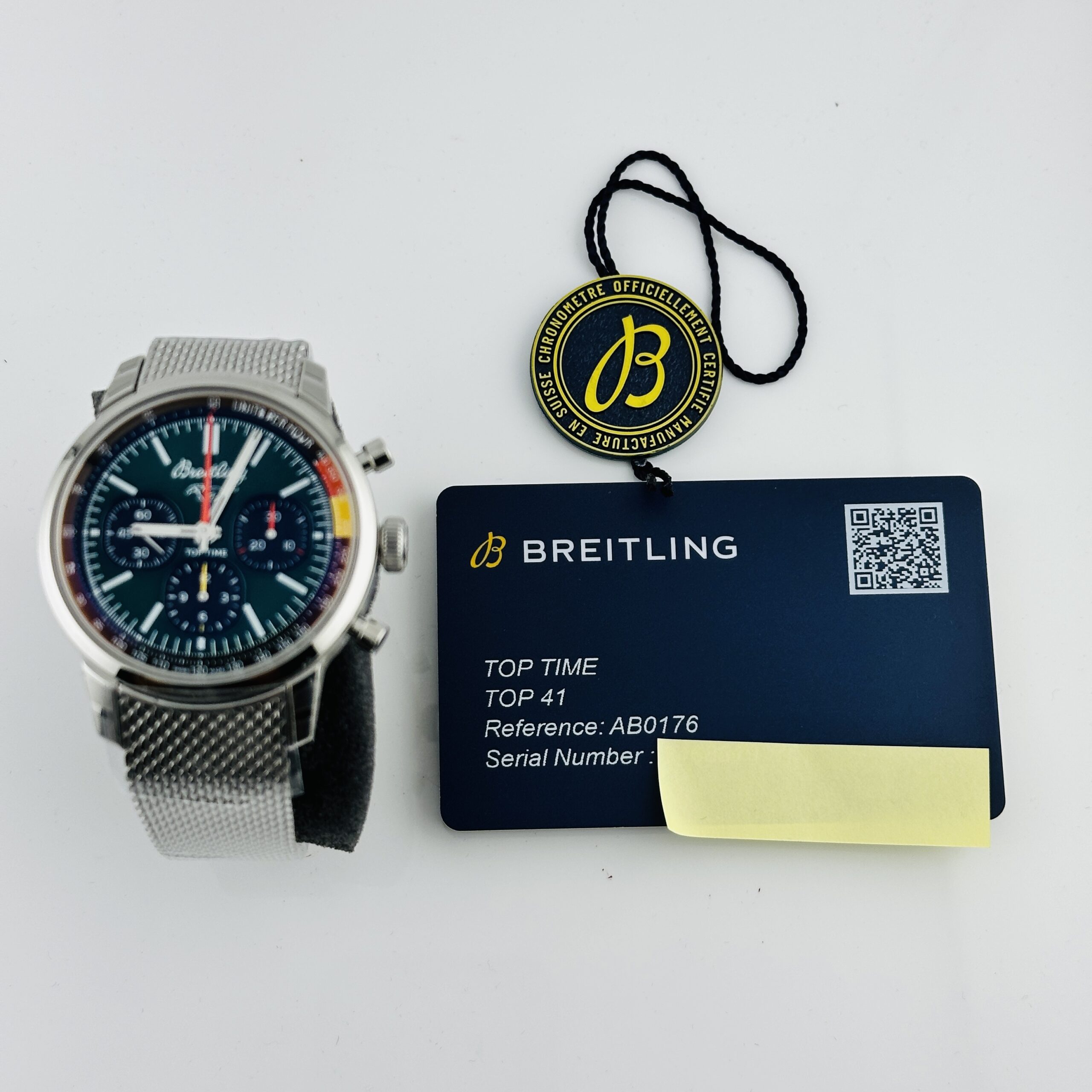 Breitling Top Time B01 Green Dial on Bracelet Ref AB01762A1L1A1 with Card 2025