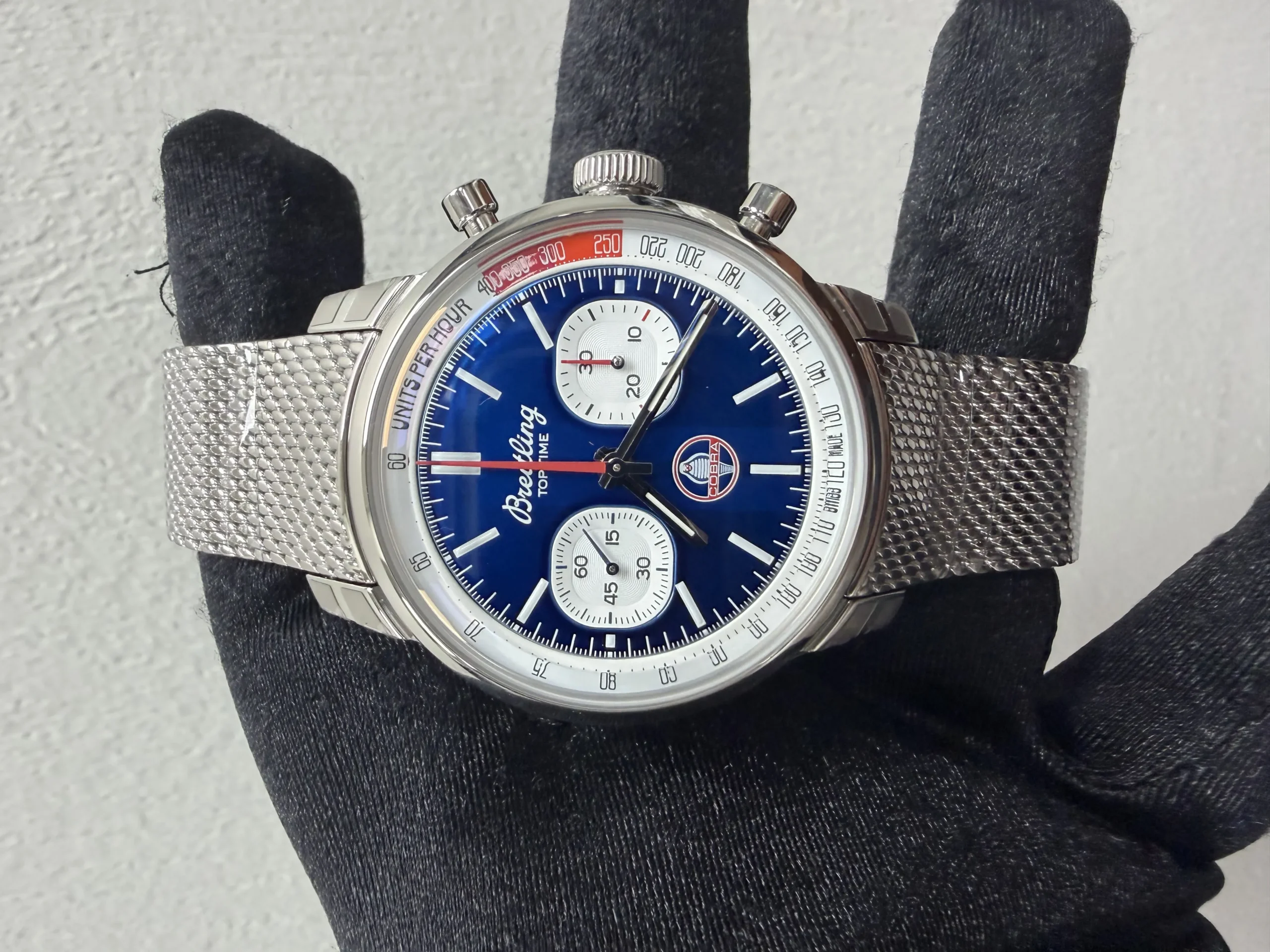 Breitling Top Time Blue Dial on Mesh Steel Ref AB01763A1C1A1 with Card