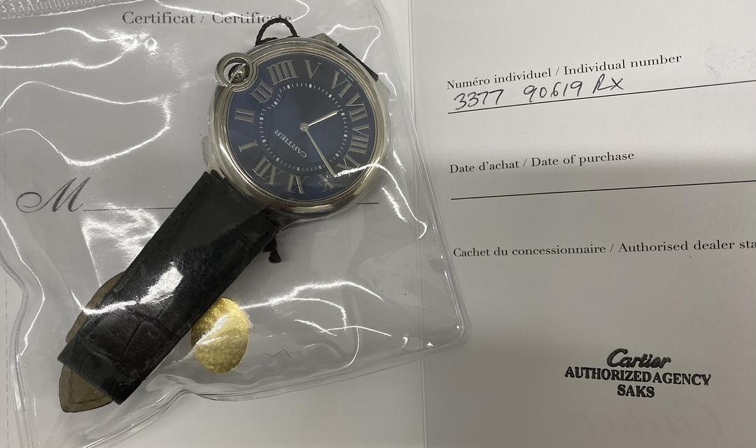 Cartier Ballon Bleu Blue Dial on Leather Ref 3377 with Papers