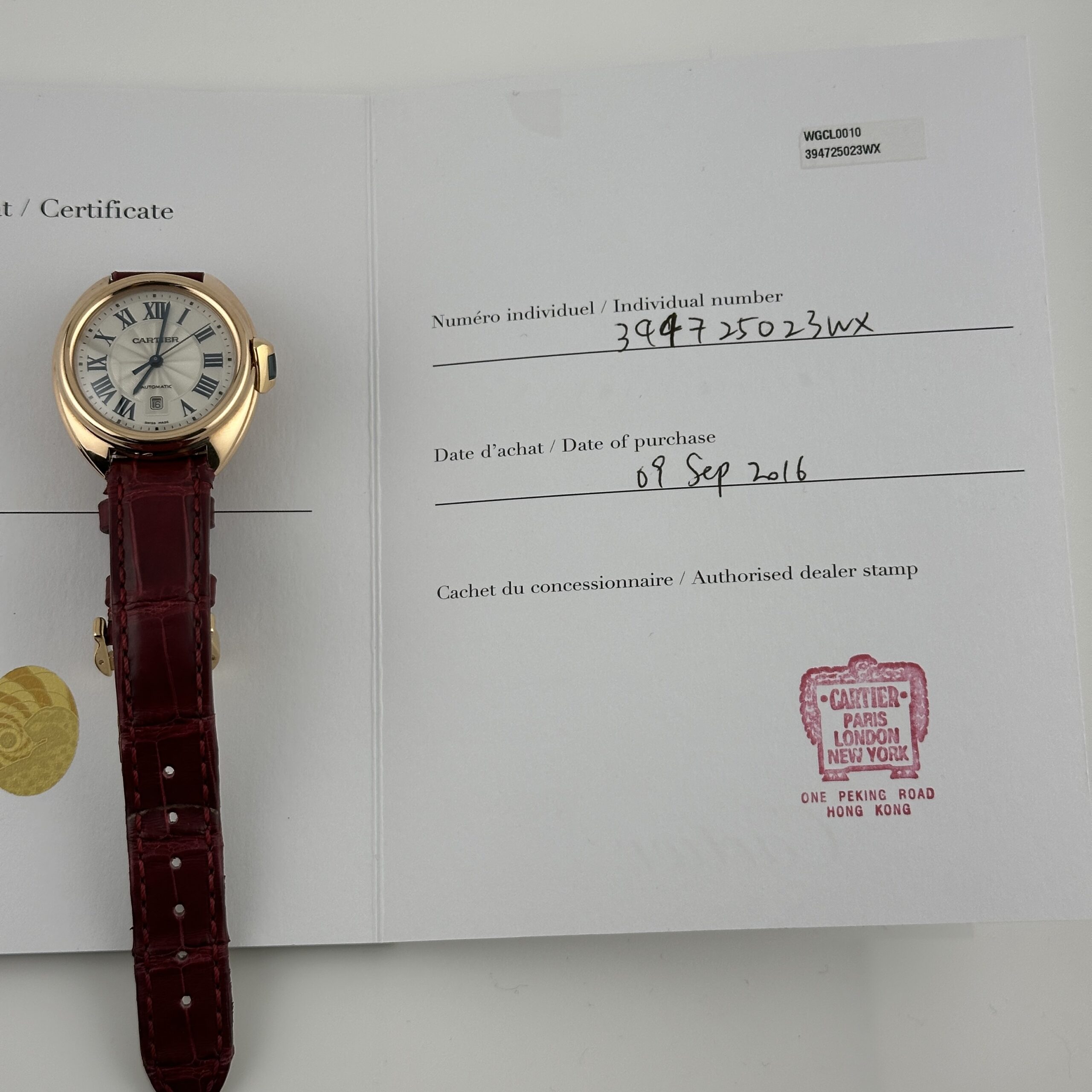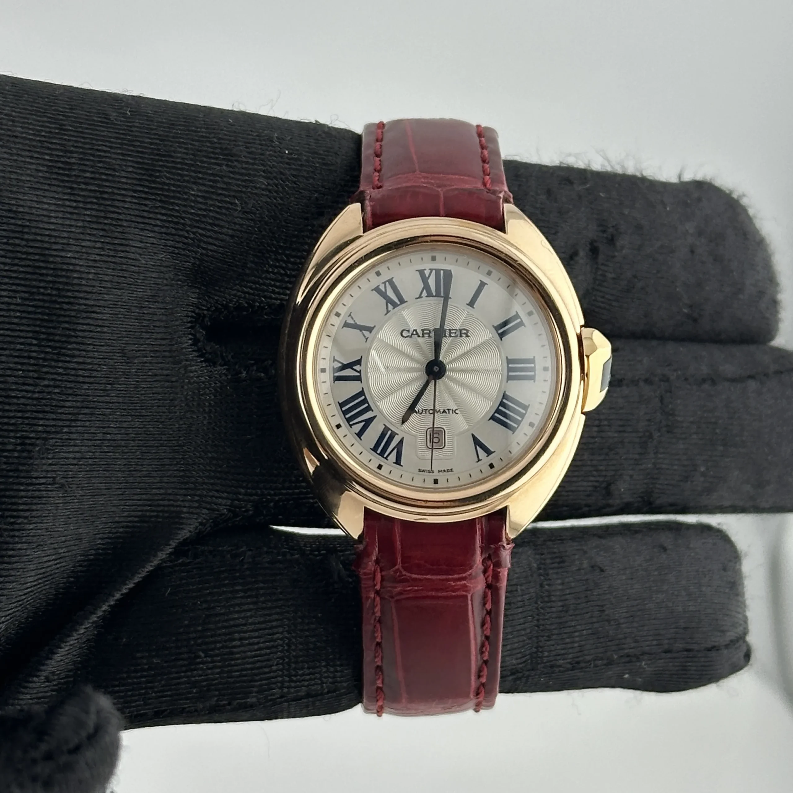 Cartier Cle Silver Roman Dial on Maroon Leather Ref 3947/WGCL0010 with Papers 2016