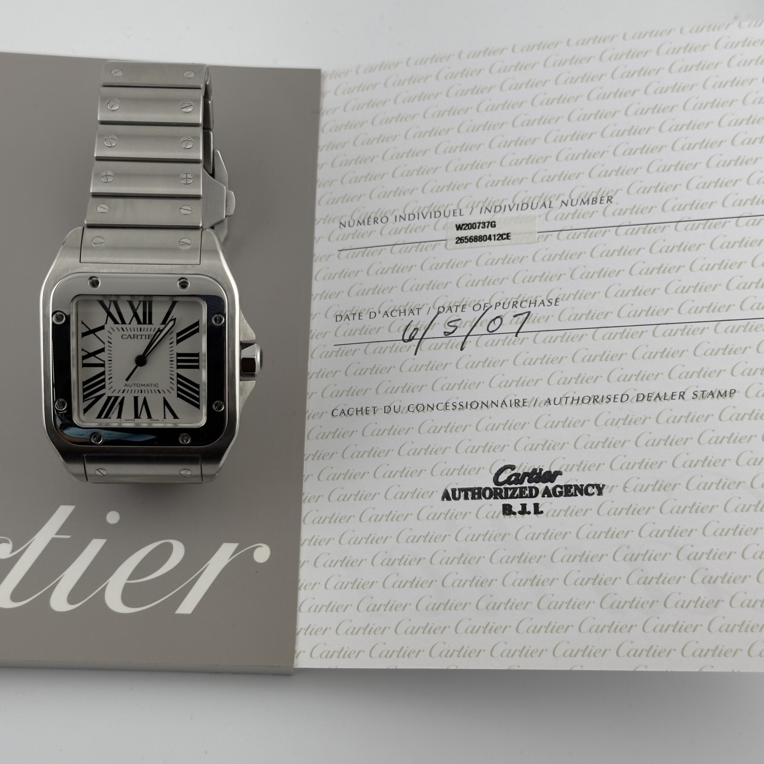 Cartier Santos 100 Silver Roman Dial Ref 2656 with Papers 2007
