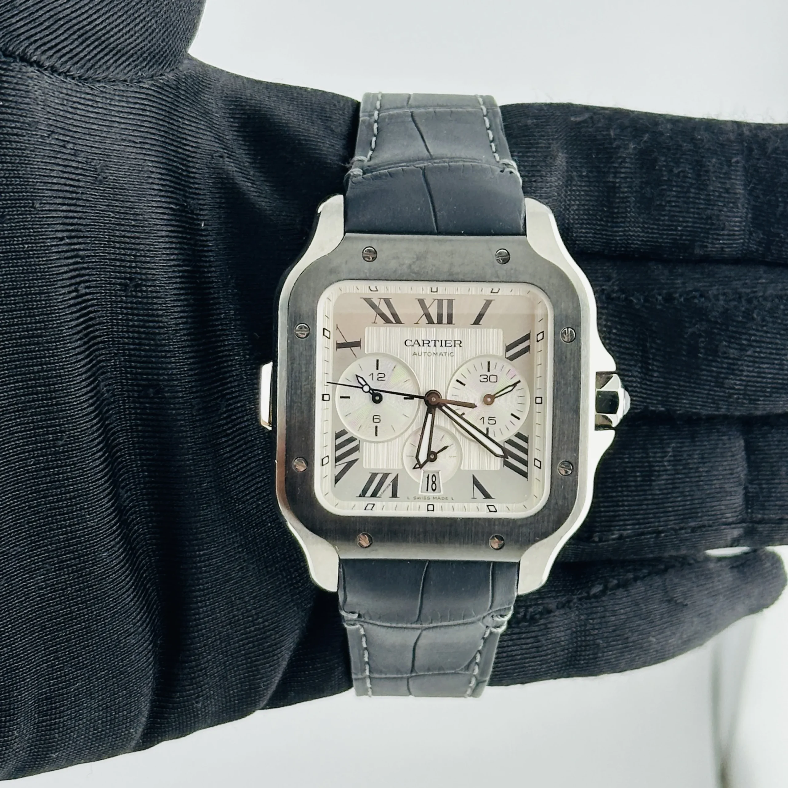 Cartier Santos XL Silver Roman Dial on Leather Ref 4183/WSSA0017 with Card 2021