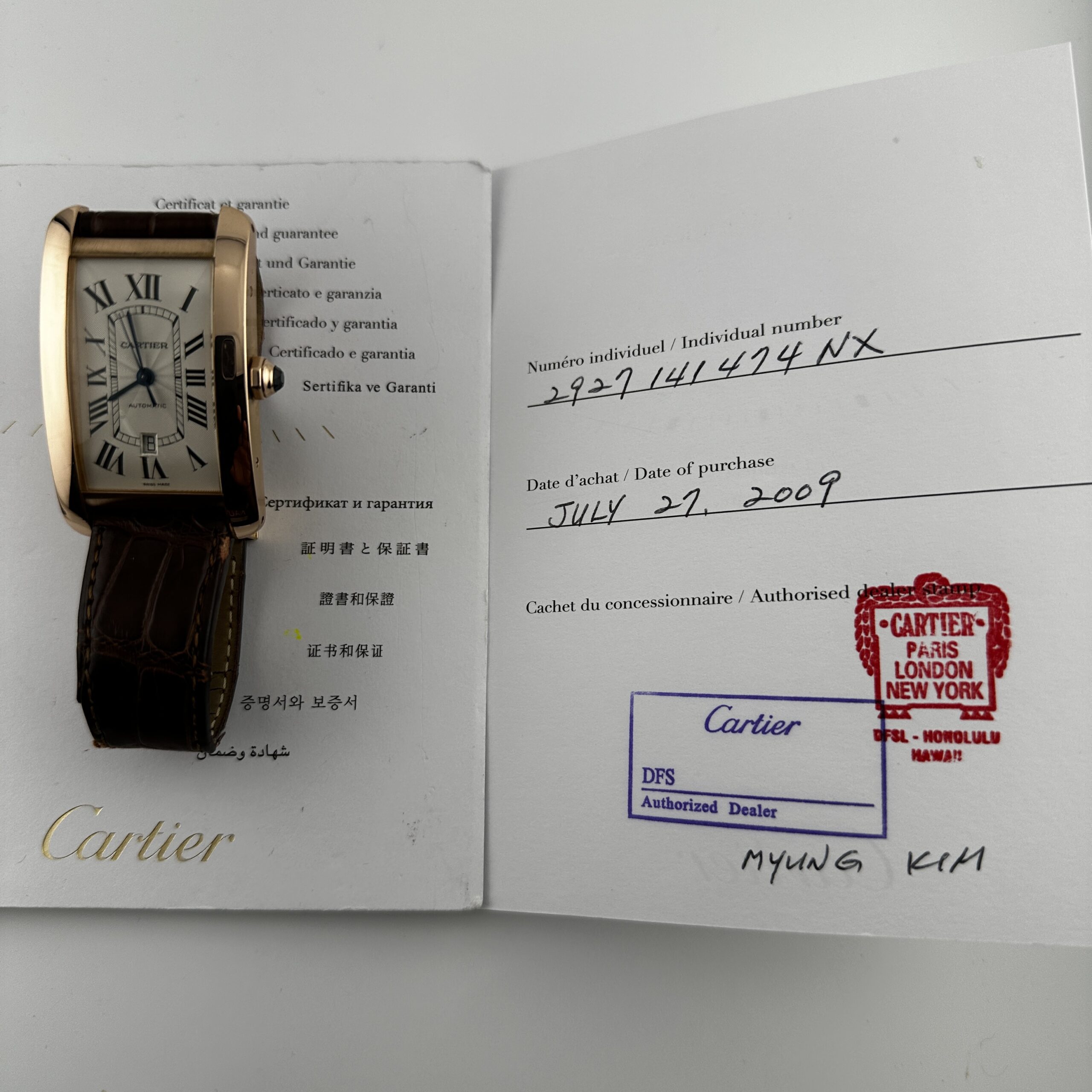 Cartier Tank Americaine XL Silver Roman Dial on Leather Ref 2927 with Papers 2009
