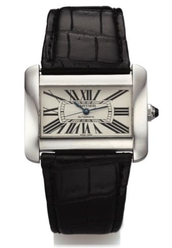 Cartier Tank Divan Silver Dial on Leather Ref 2612 with Papers