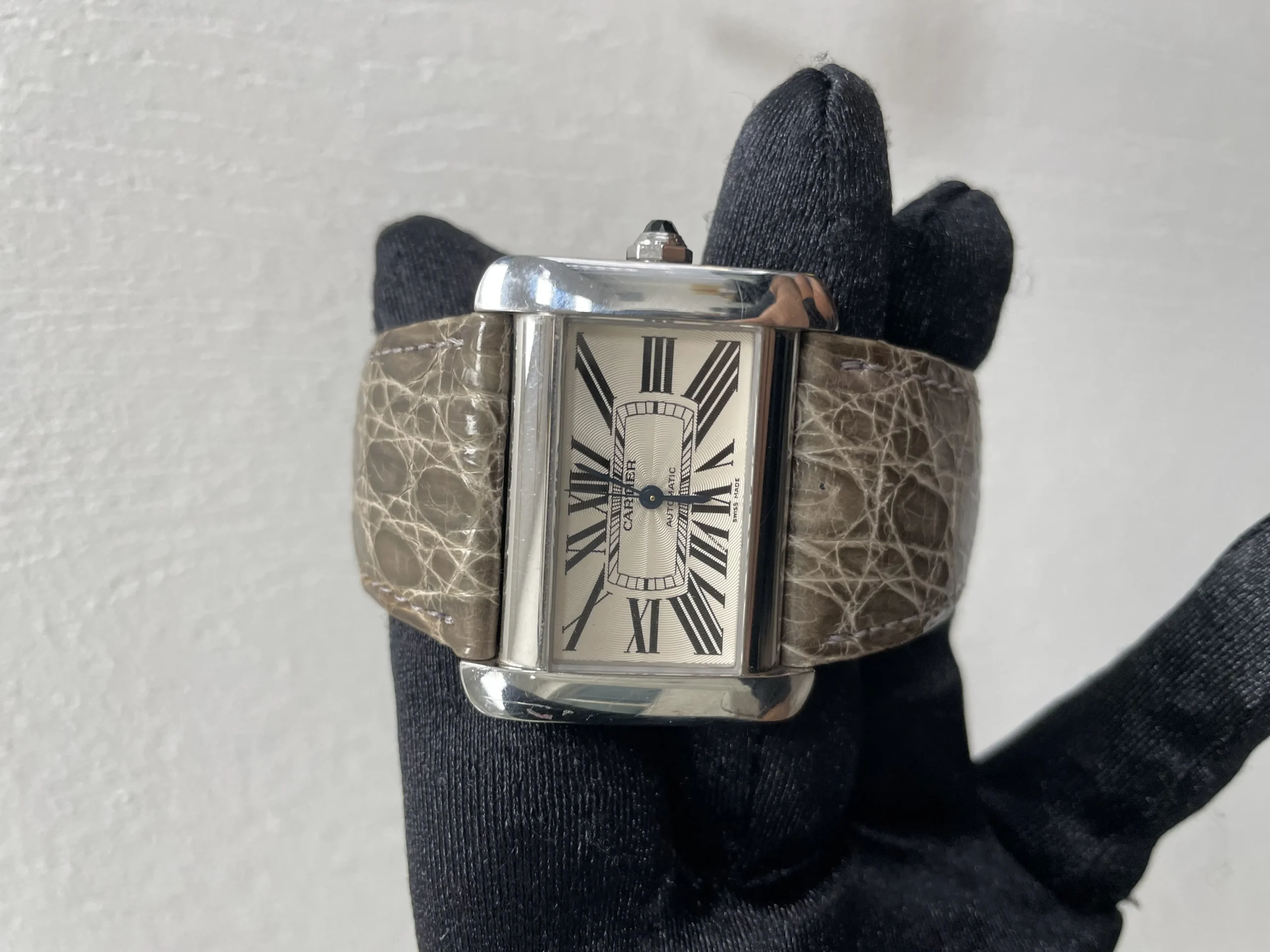 Cartier Tank Divan Silver Dial on Leather Ref 2612 with Papers