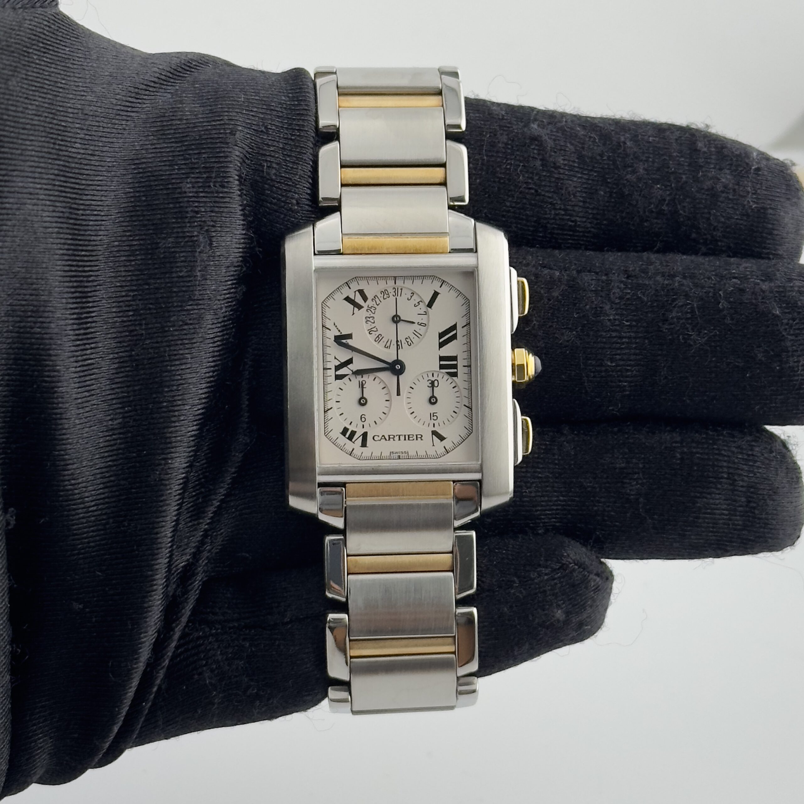 Cartier Tank Francaise White Roman Chrono Dial Ref 2303