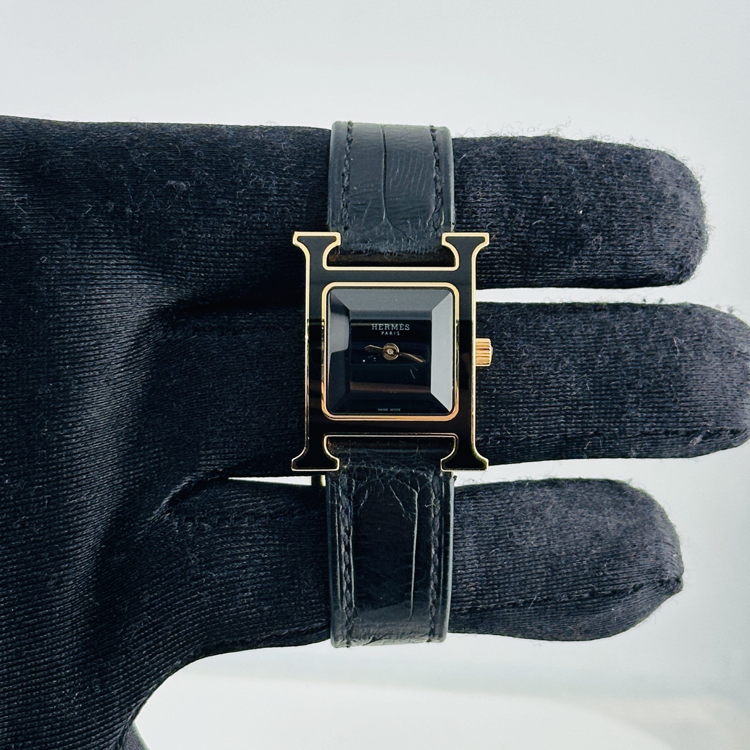 Hermes H Black Dial on Leather Ref HH1.270B with Papers