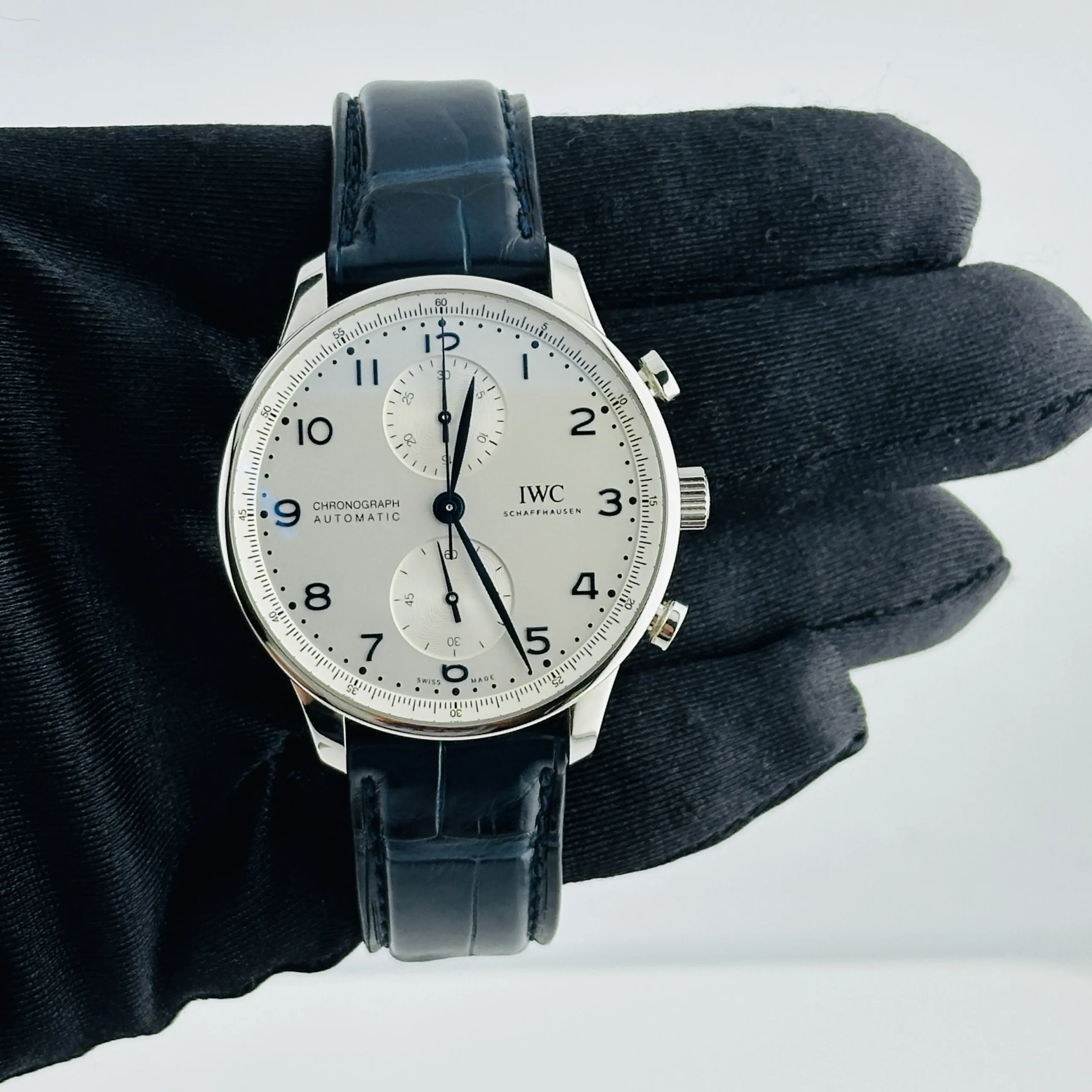 Iwc Portugieser Chronograph Silver Dial on Leather Strap Ref IW371605 with Card 2023
