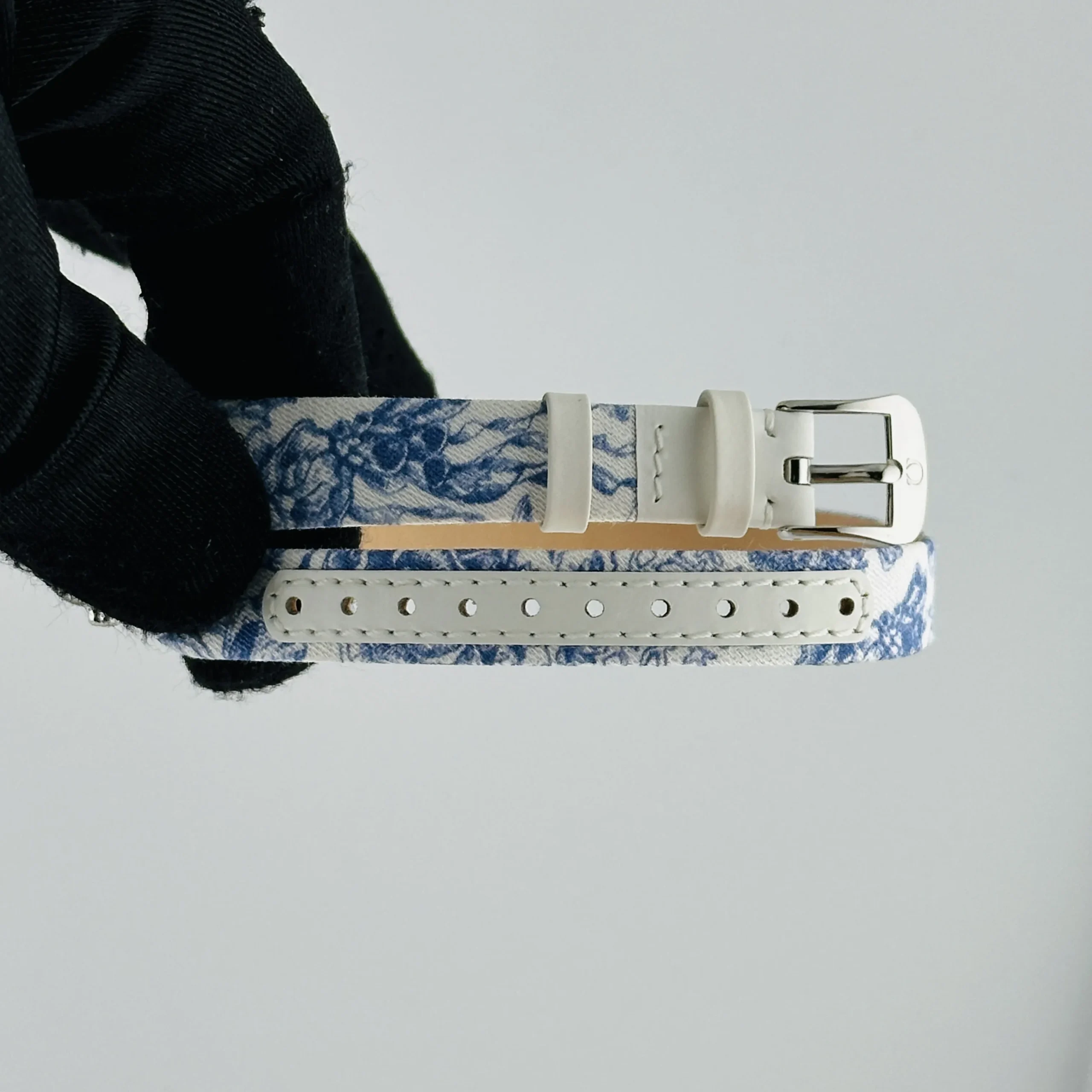 Omega De Ville Mini Trésor Quartz White / Blue Roman Markers Dial on Fabric Strap Ref 428.17.26.60.04.001 with Card