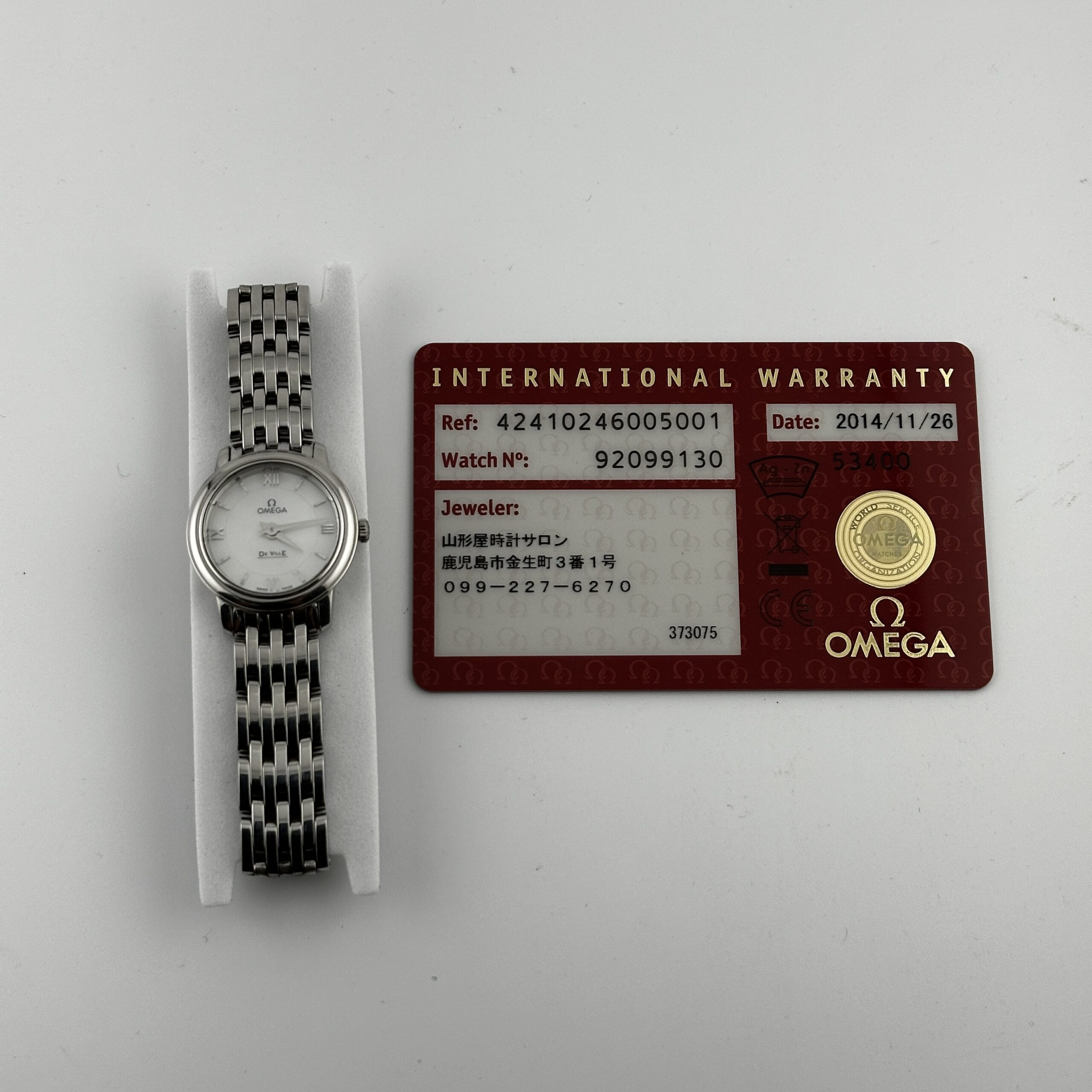 Omega De Ville Prestige B/P White Mop Dial on Bracelet Ref 424.10.24.60.05.001 with Card 2014