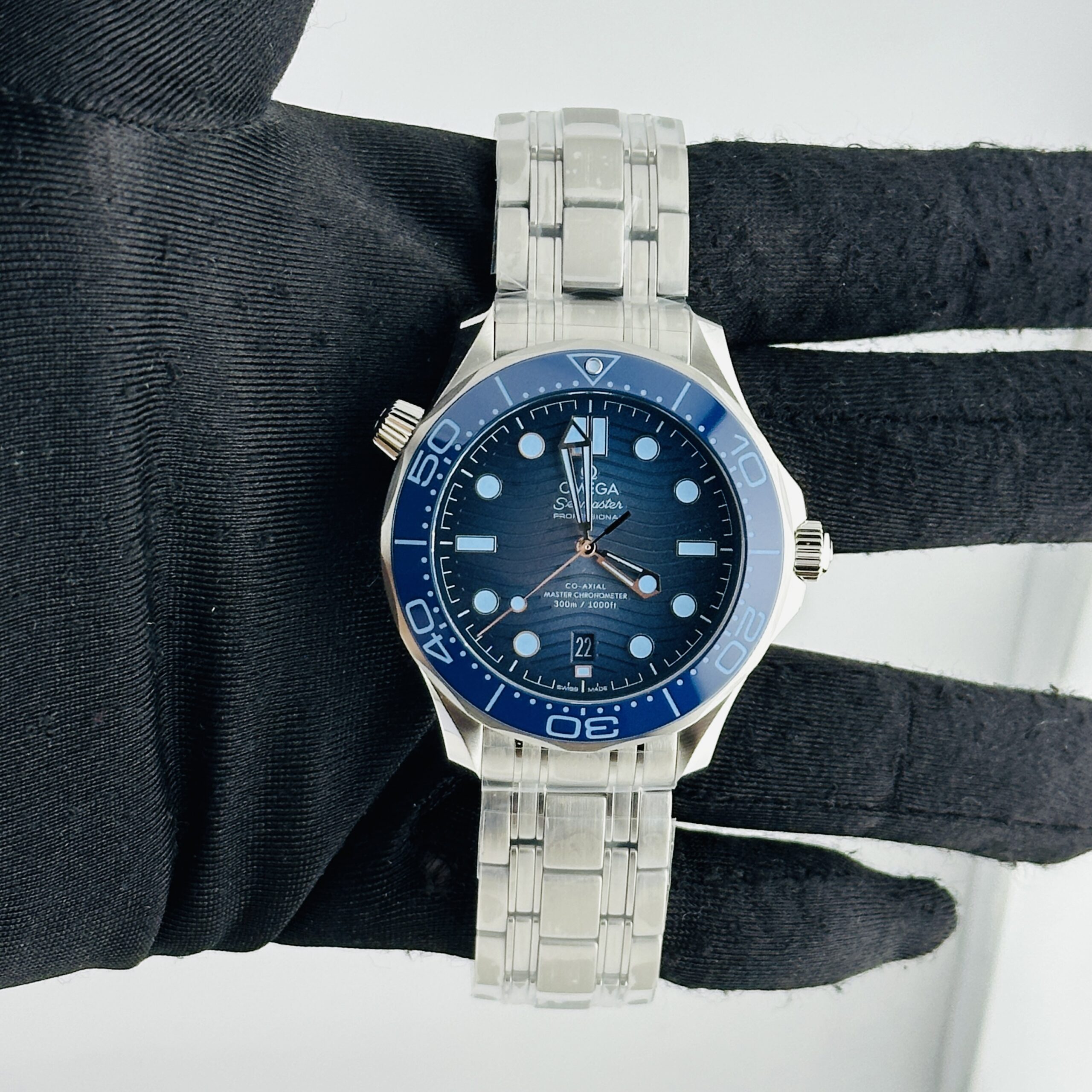 Omega Seamaster Diver 300M Co-Axial Master Chronometer Blue Dial on Bracelet Ref 210.30.42.20.03.003 with Card
