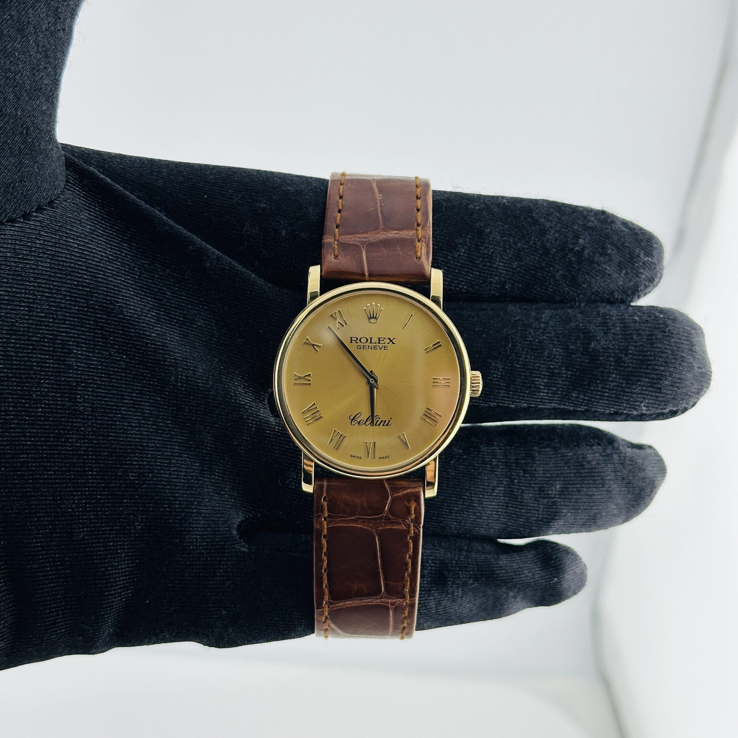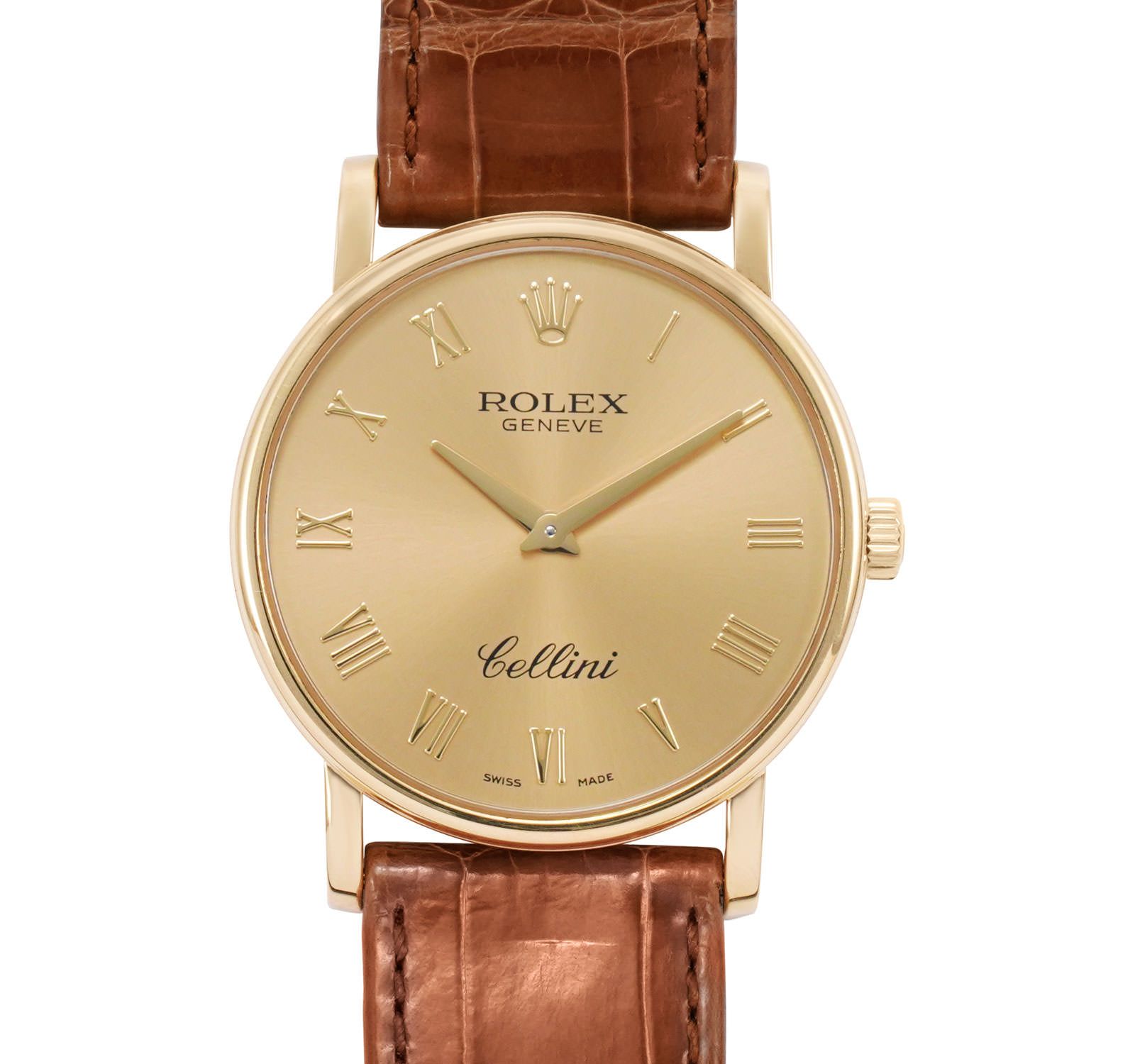 Rolex Cellini Gold Dial on Leather Ref 5115/8 with Card Old Green 2014
