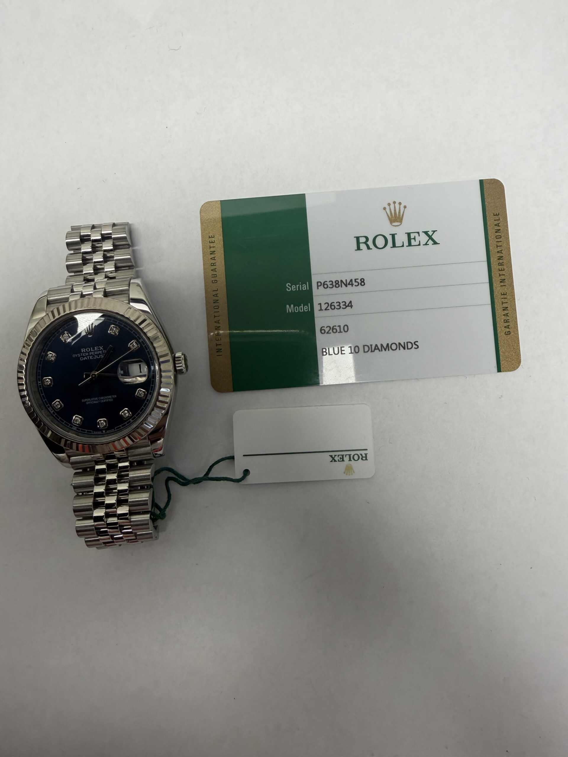 Rolex Datejust 41 Blue Diamond Dial on Jubilee Ref 126334 with New Style Card White 2020
