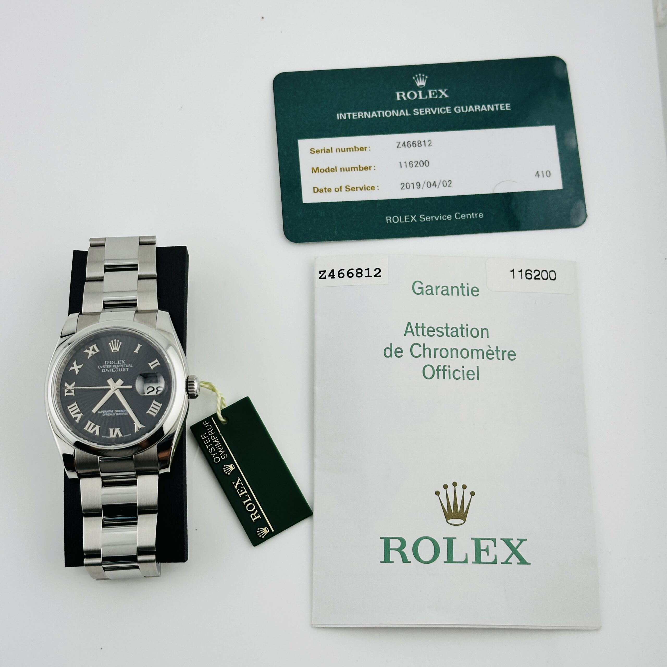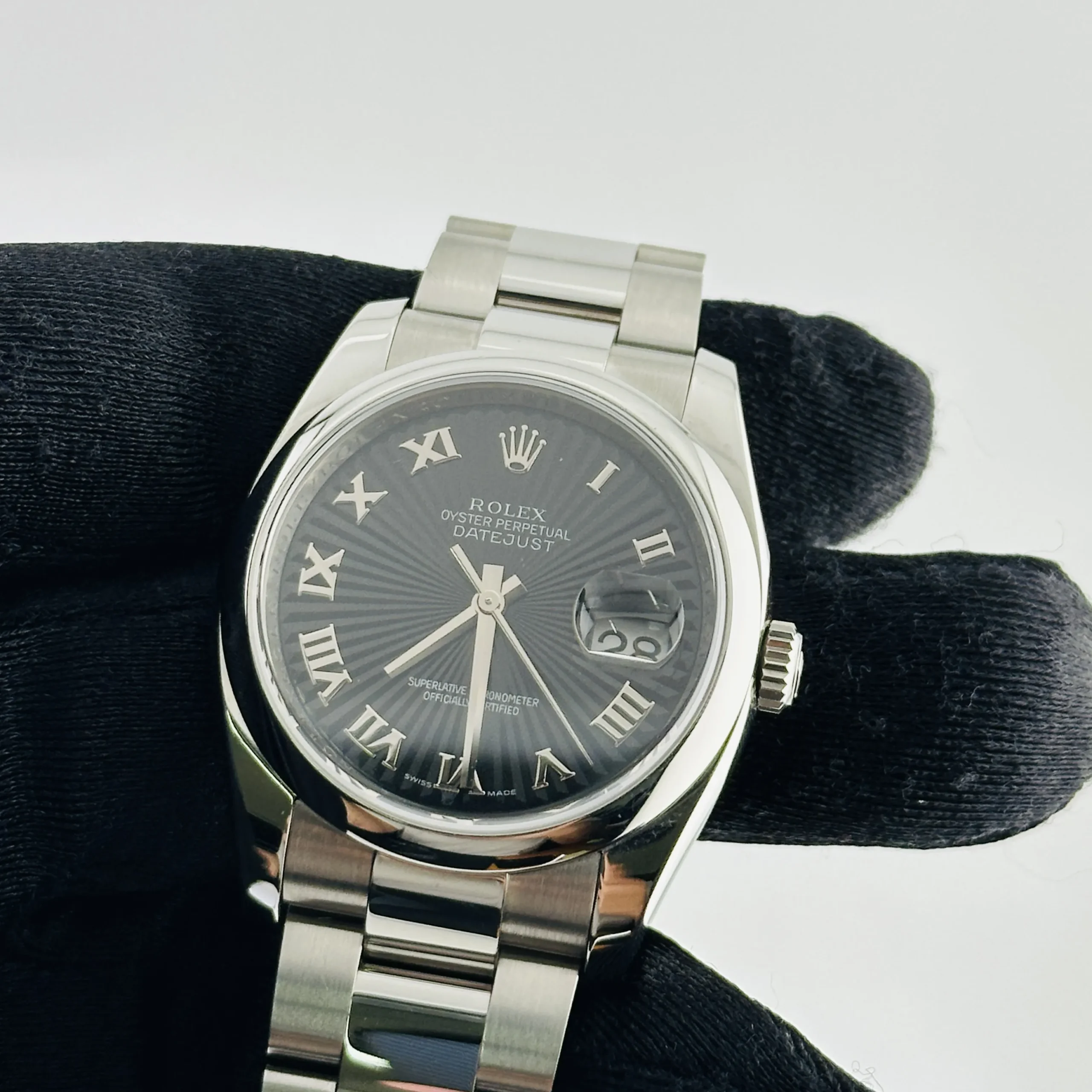Rolex Datejust Black Sunburst Dial on Oyster Ref 116200 with Papers 2007