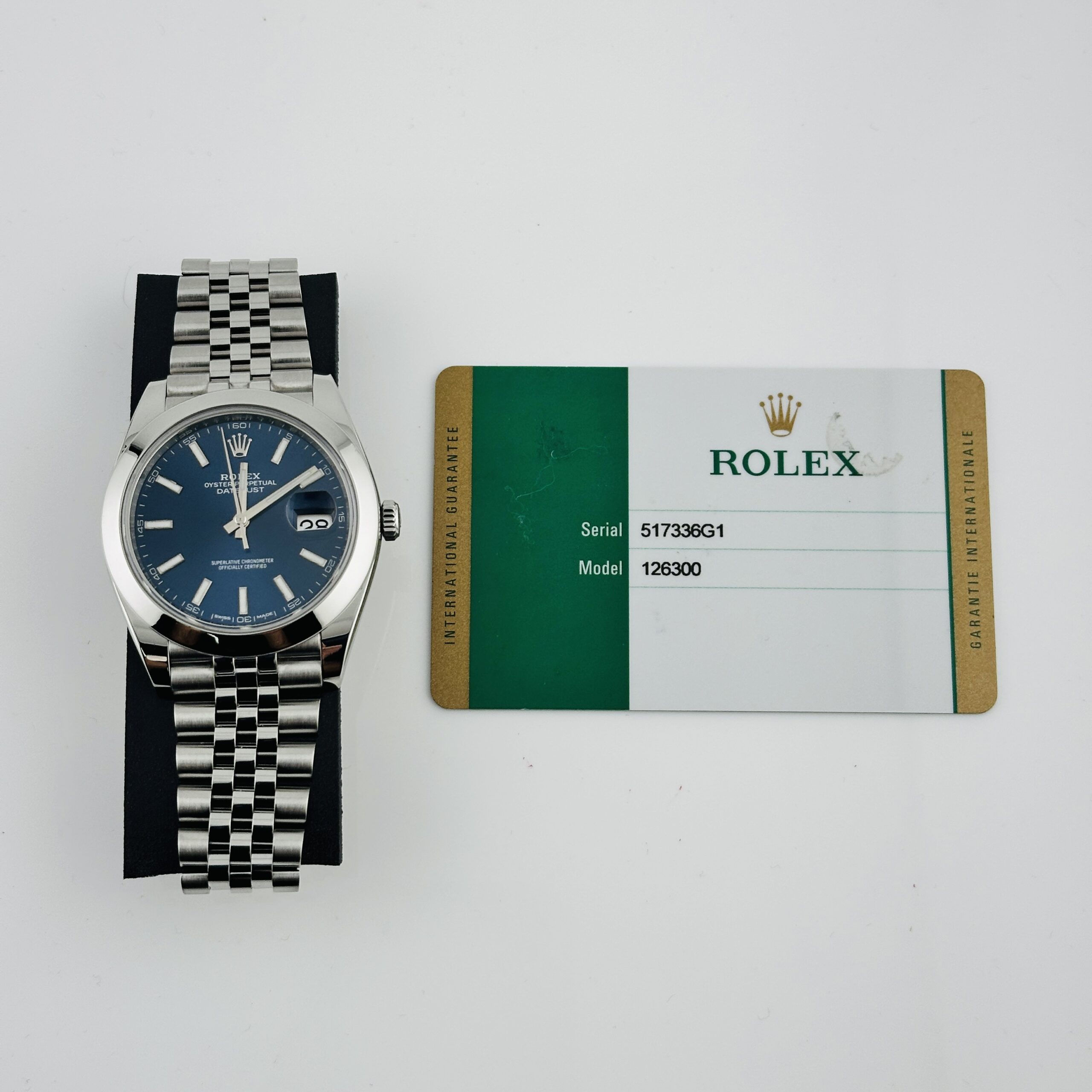 Rolex Datejust Blue Index Dial on D Link Jubilee Ref 126300 with New Style Card White 2018