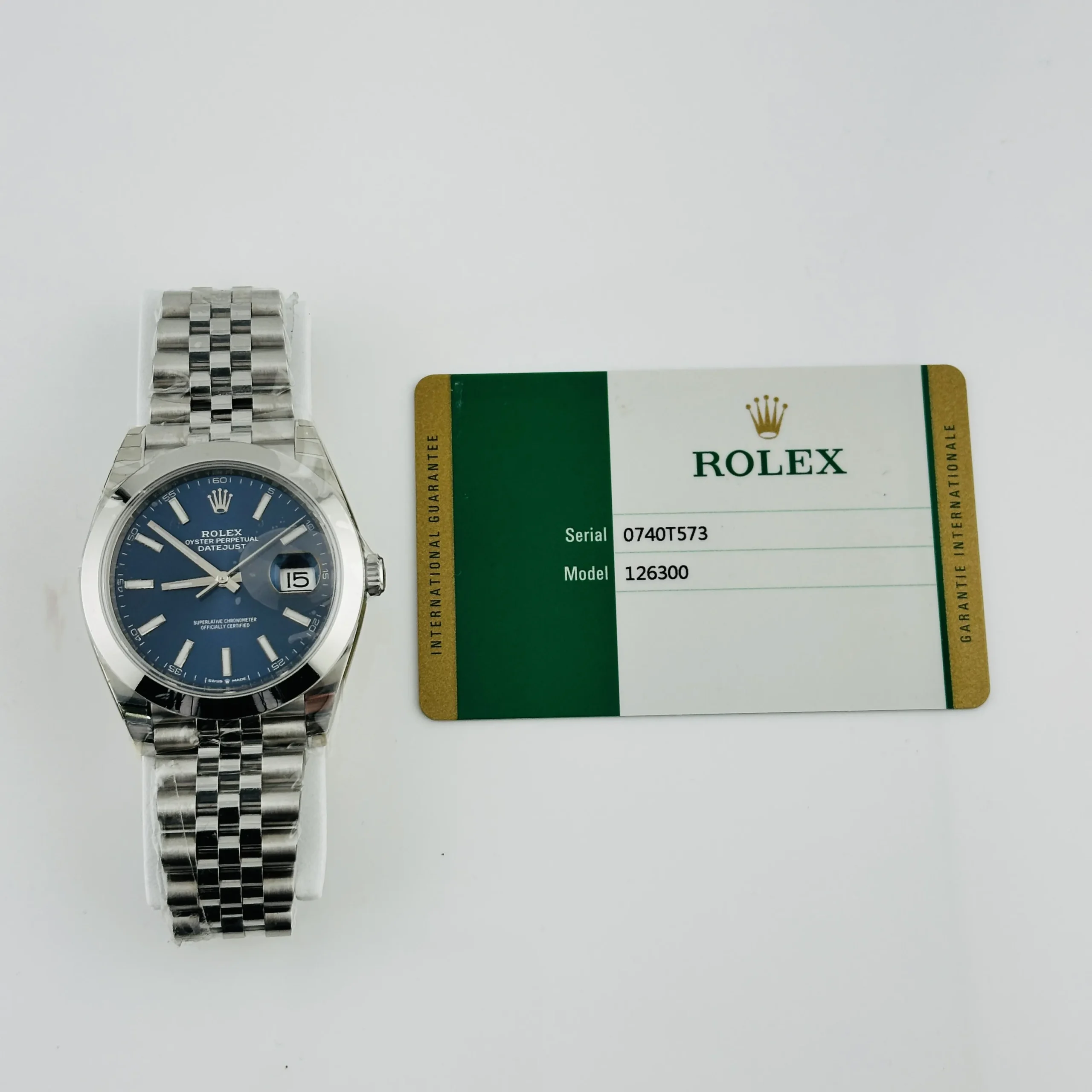 Rolex Datejust Blue Index Dial on Jubilee Ref 126300 with New Style Card White 2019