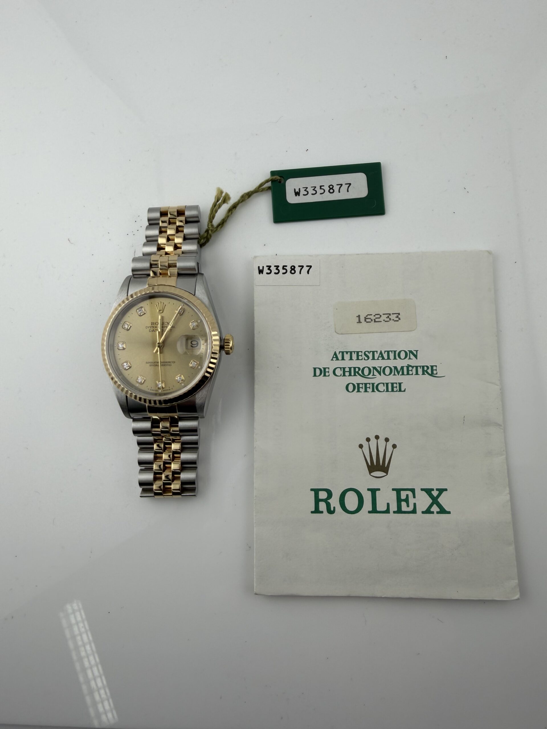 Rolex Datejust Champagne Diamond Dial on Jubilee Ref 16233 with Papers 1996