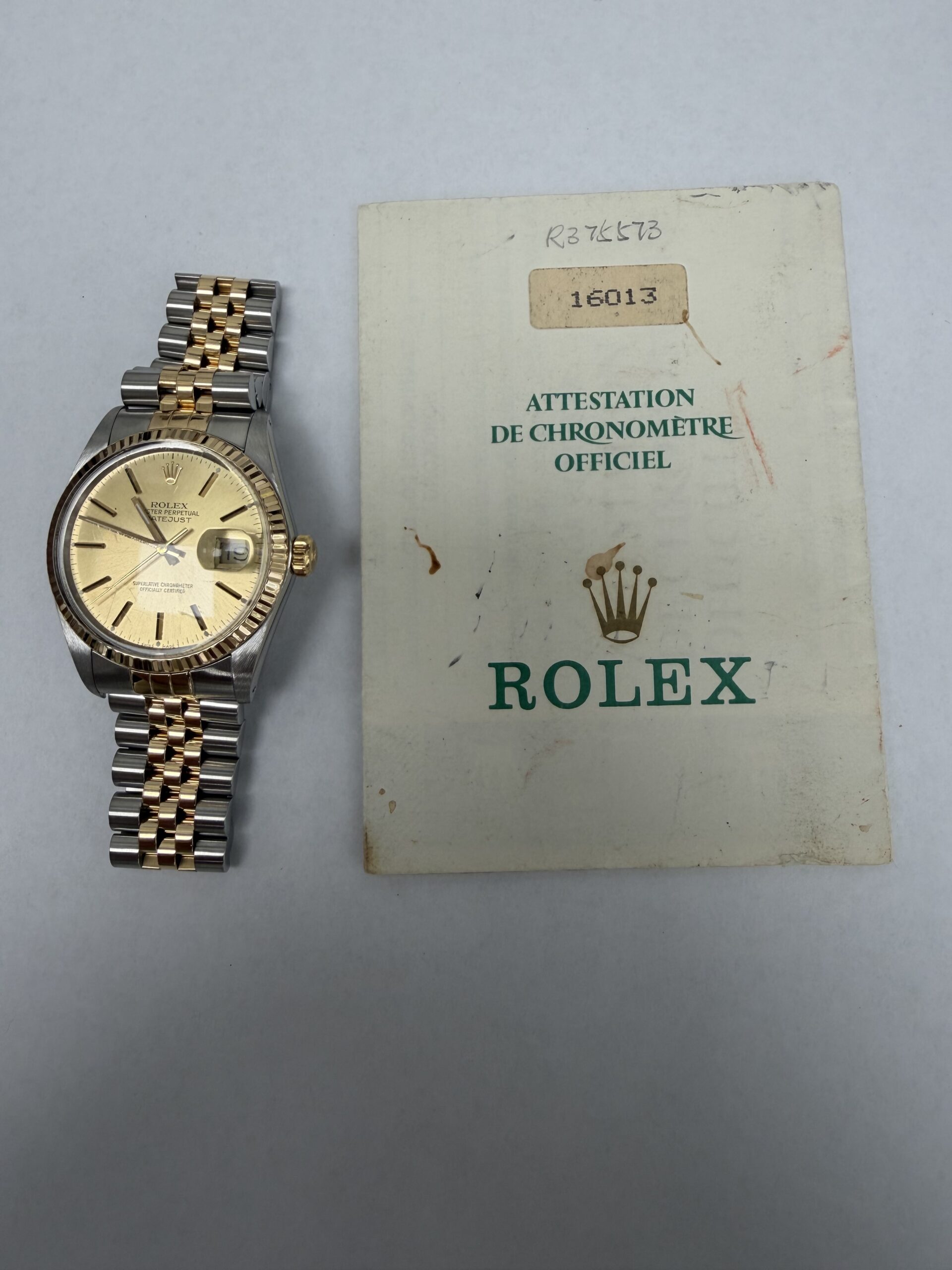 Rolex Datejust Champagne Stick Dial on D Link Jubilee Ref 16013 with Papers 1988
