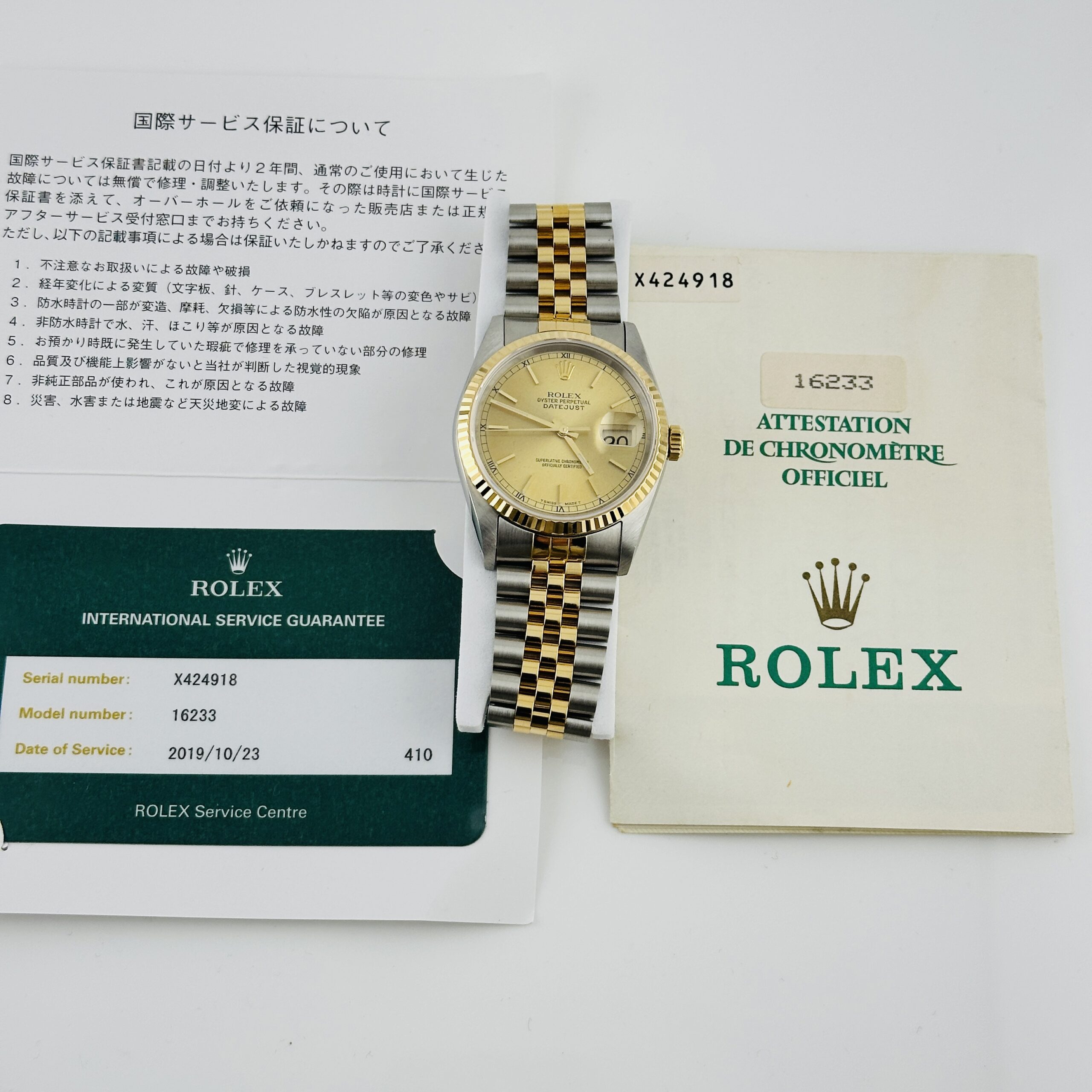 Rolex Datejust Champagne Stick Dial on D Link Jubilee Ref 16233 with Papers 1991