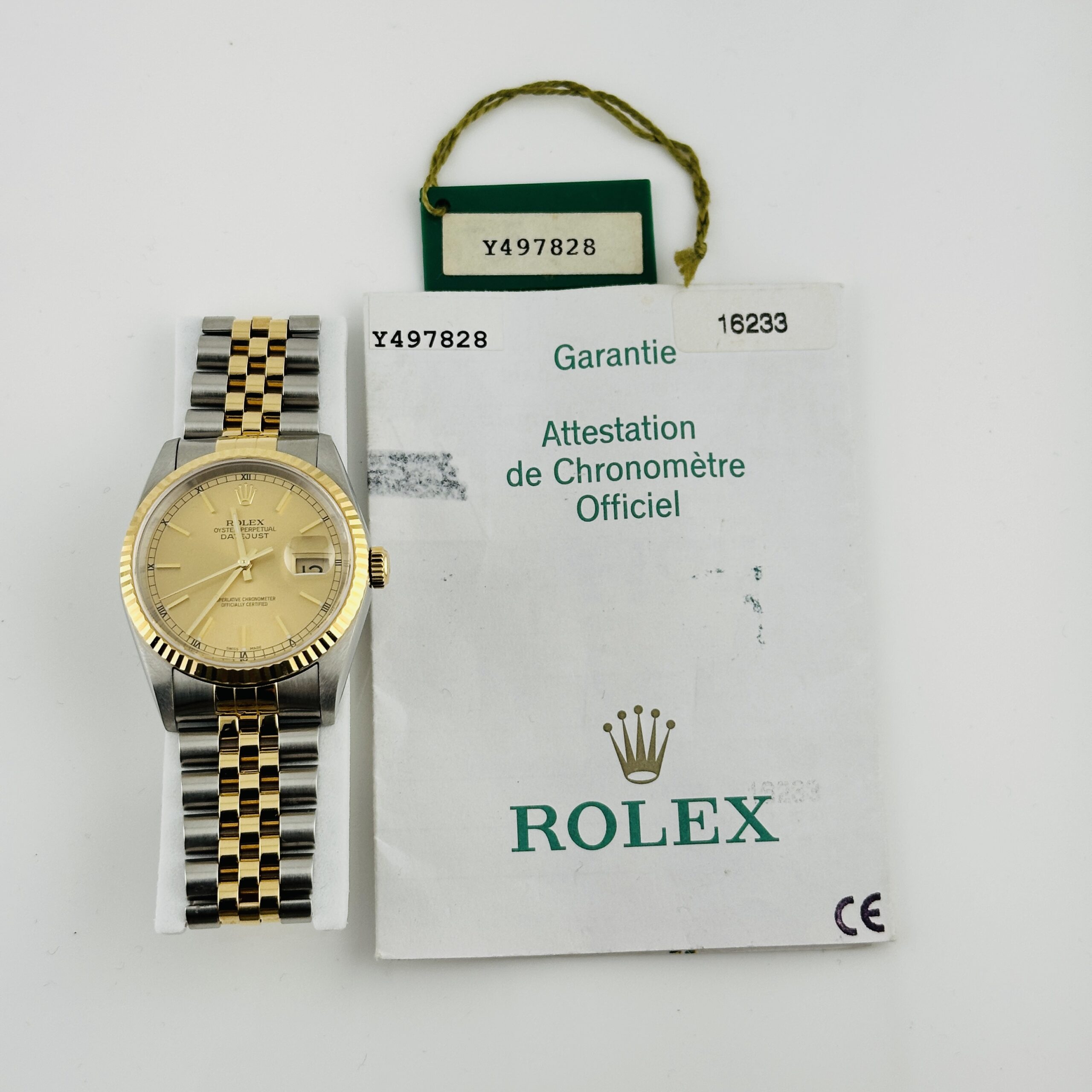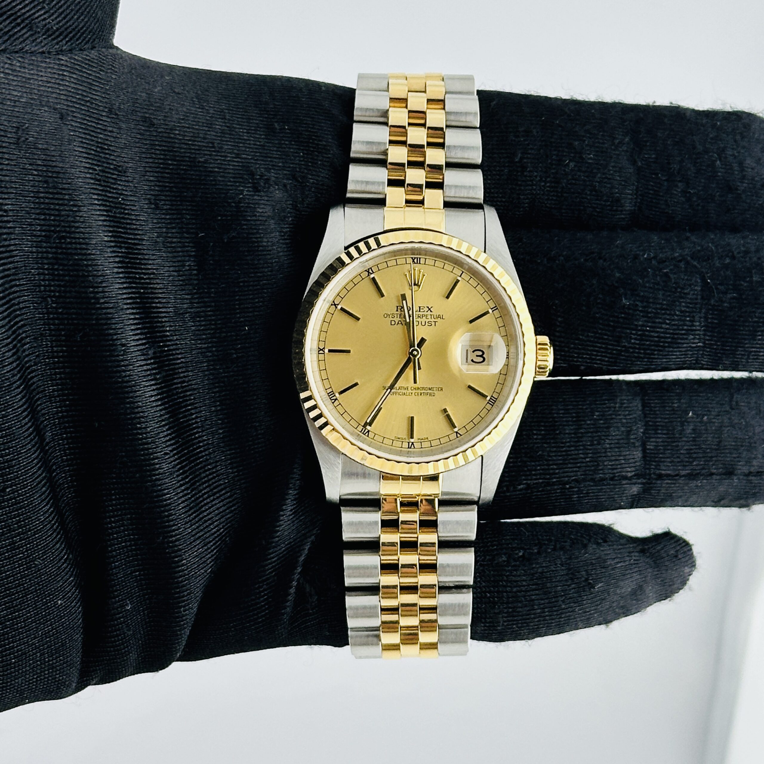 Rolex Datejust Champagne Stick Dial on D Link Jubilee Ref 16233 with Papers 2003