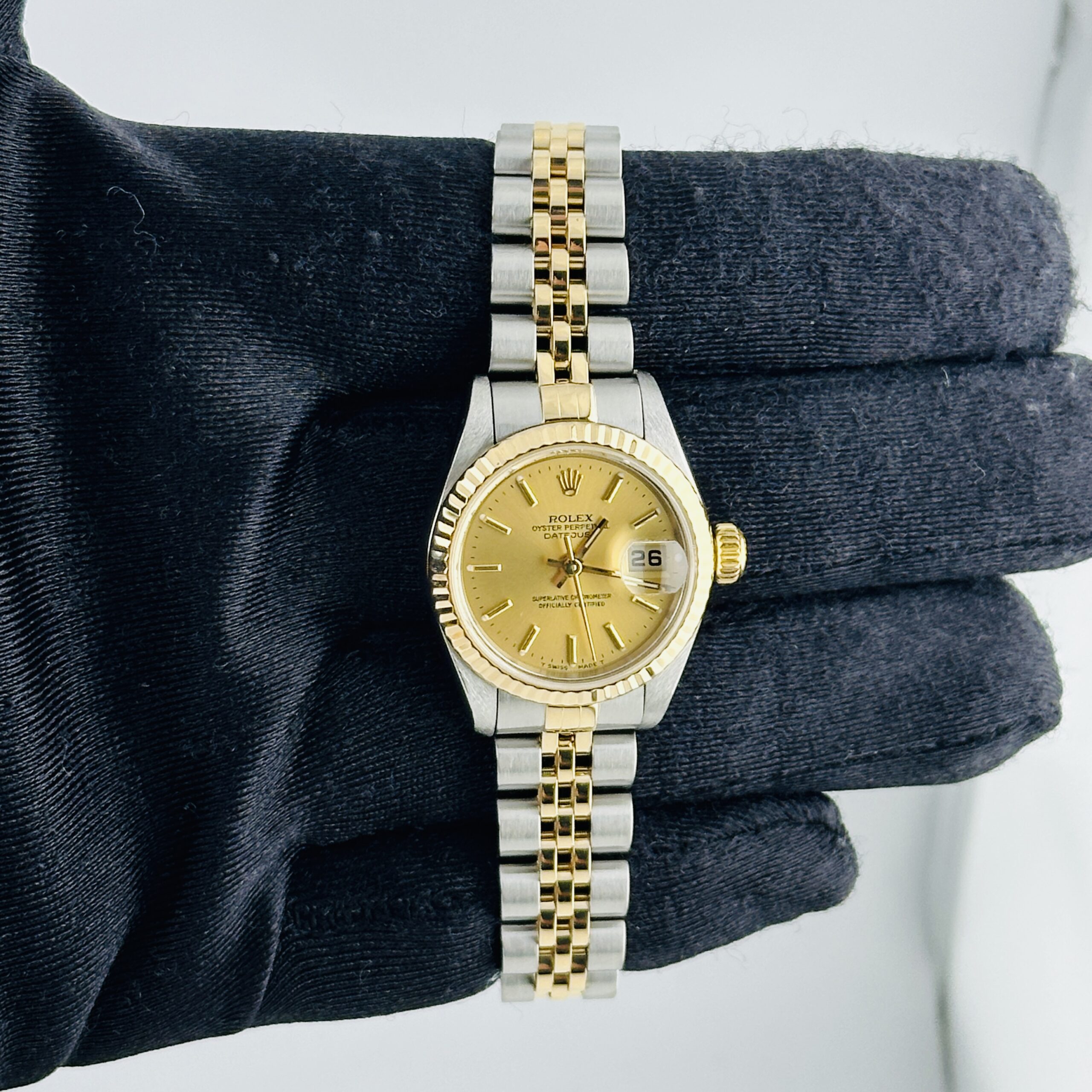 Rolex Datejust Champagne Stick Dial on D Link Jubilee Ref 79173 with Papers 1999