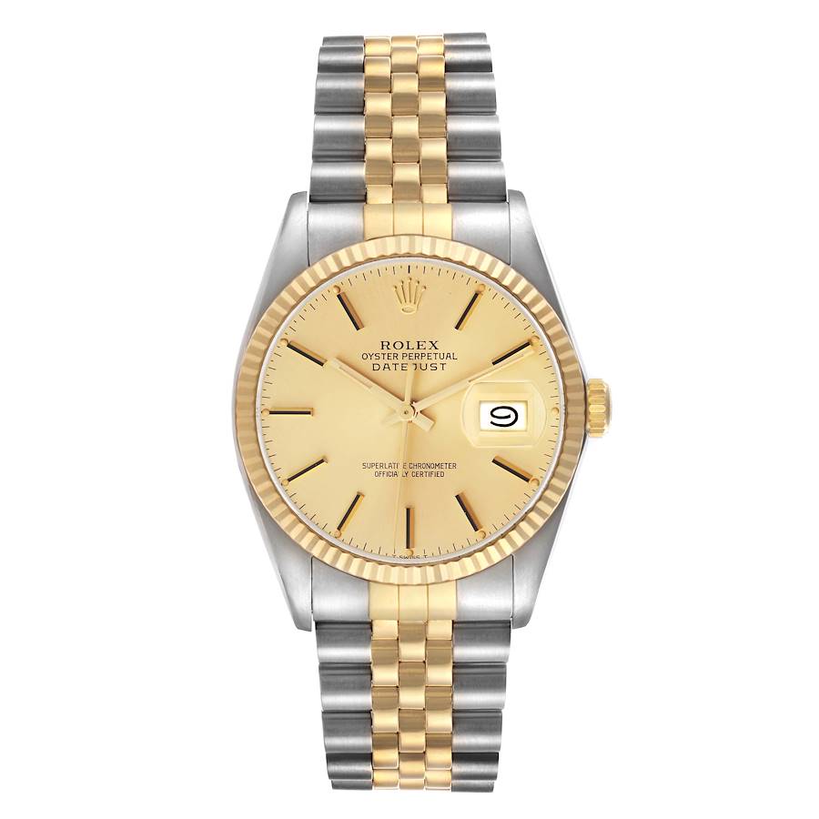 Rolex Datejust Champagne Stick Dial on Jubilee Ref 16013 with Papers 1989