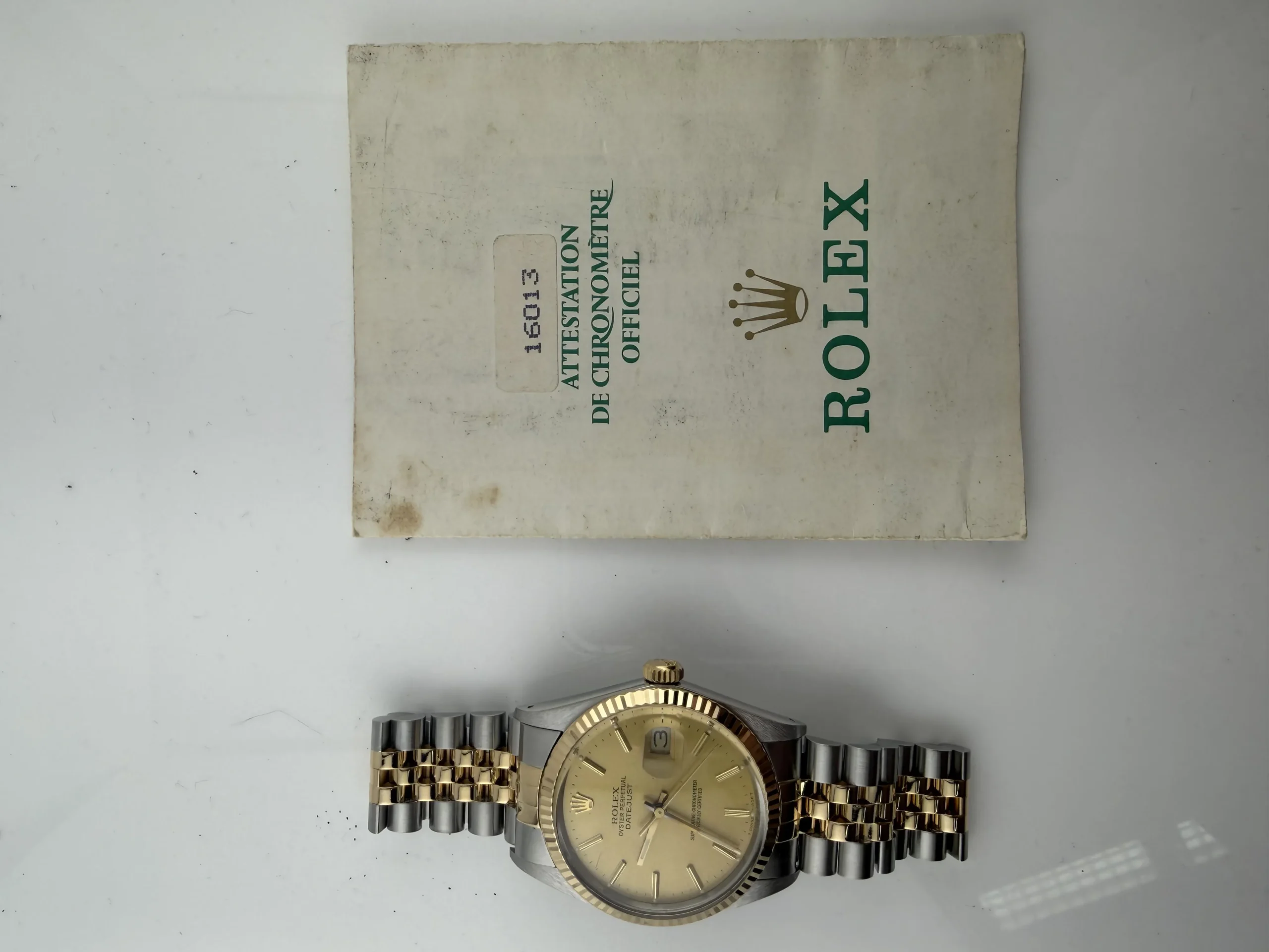 Rolex Datejust Champagne Stick Dial on Jubilee Ref 16233 with Papers 1989