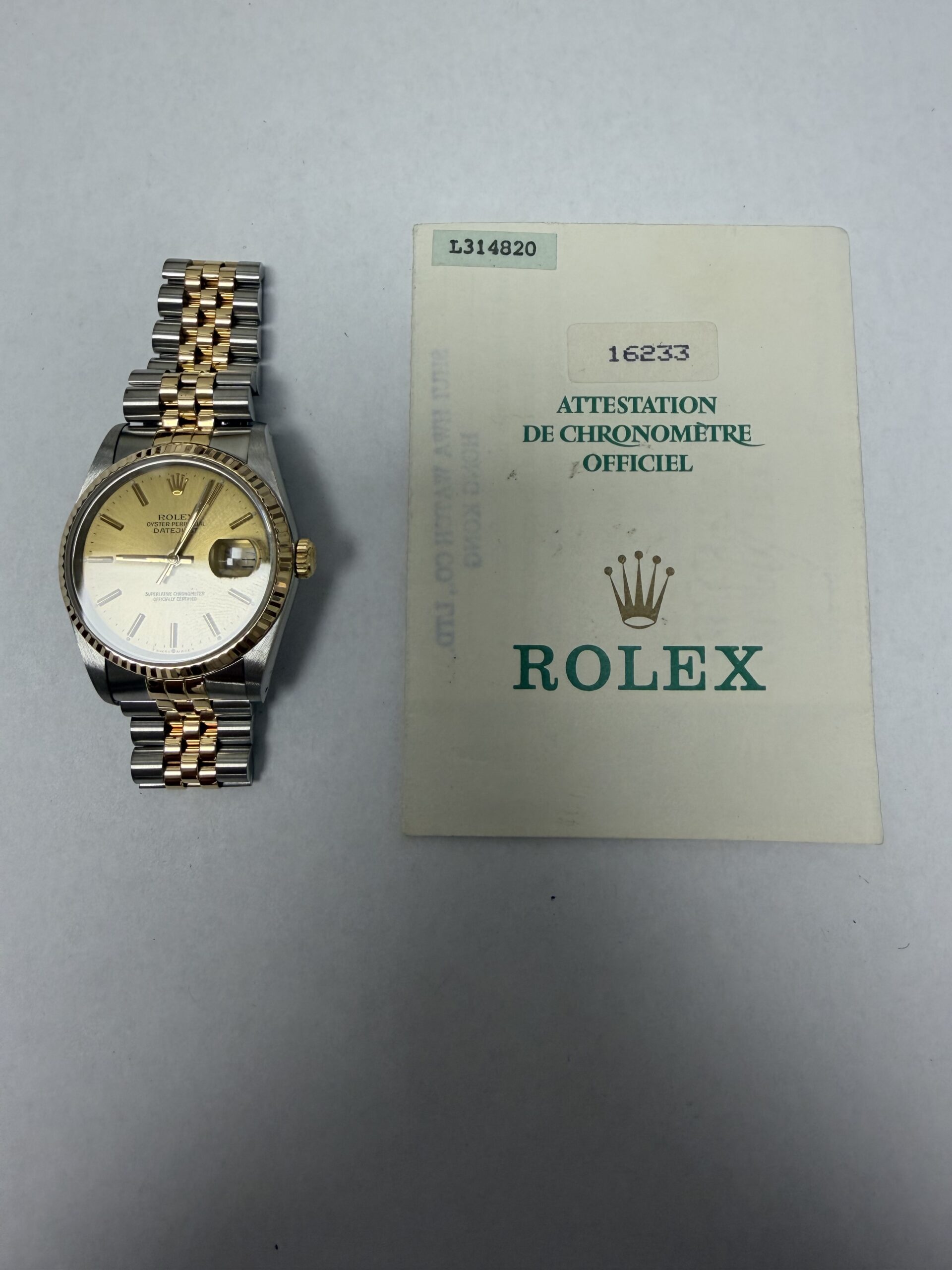 Rolex Datejust Champagne Stick Dial on Jubilee Ref 16233 with Papers 1990