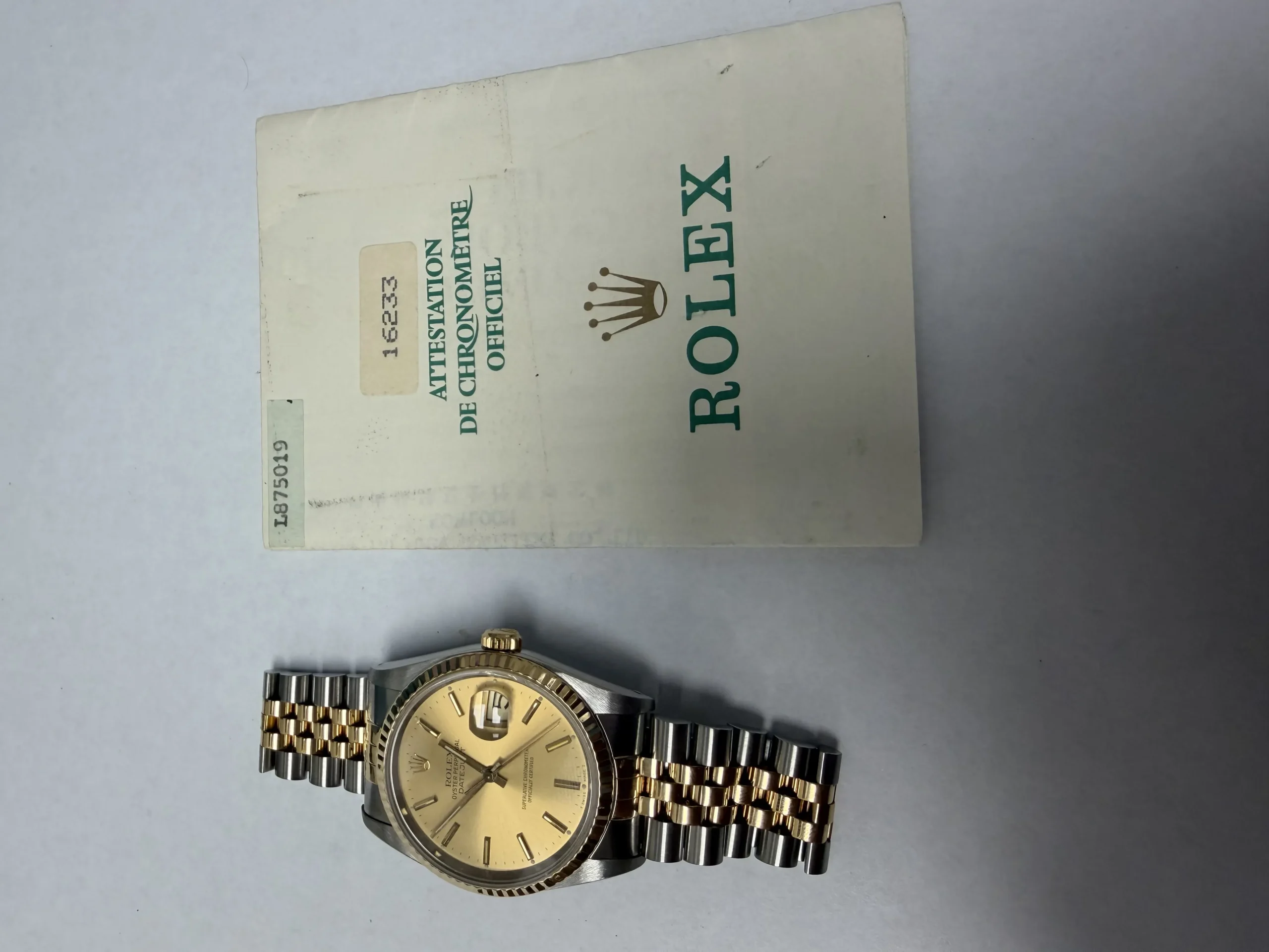 Rolex Datejust Champagne Stick Dial on Jubilee Ref 16233 with Papers 1990