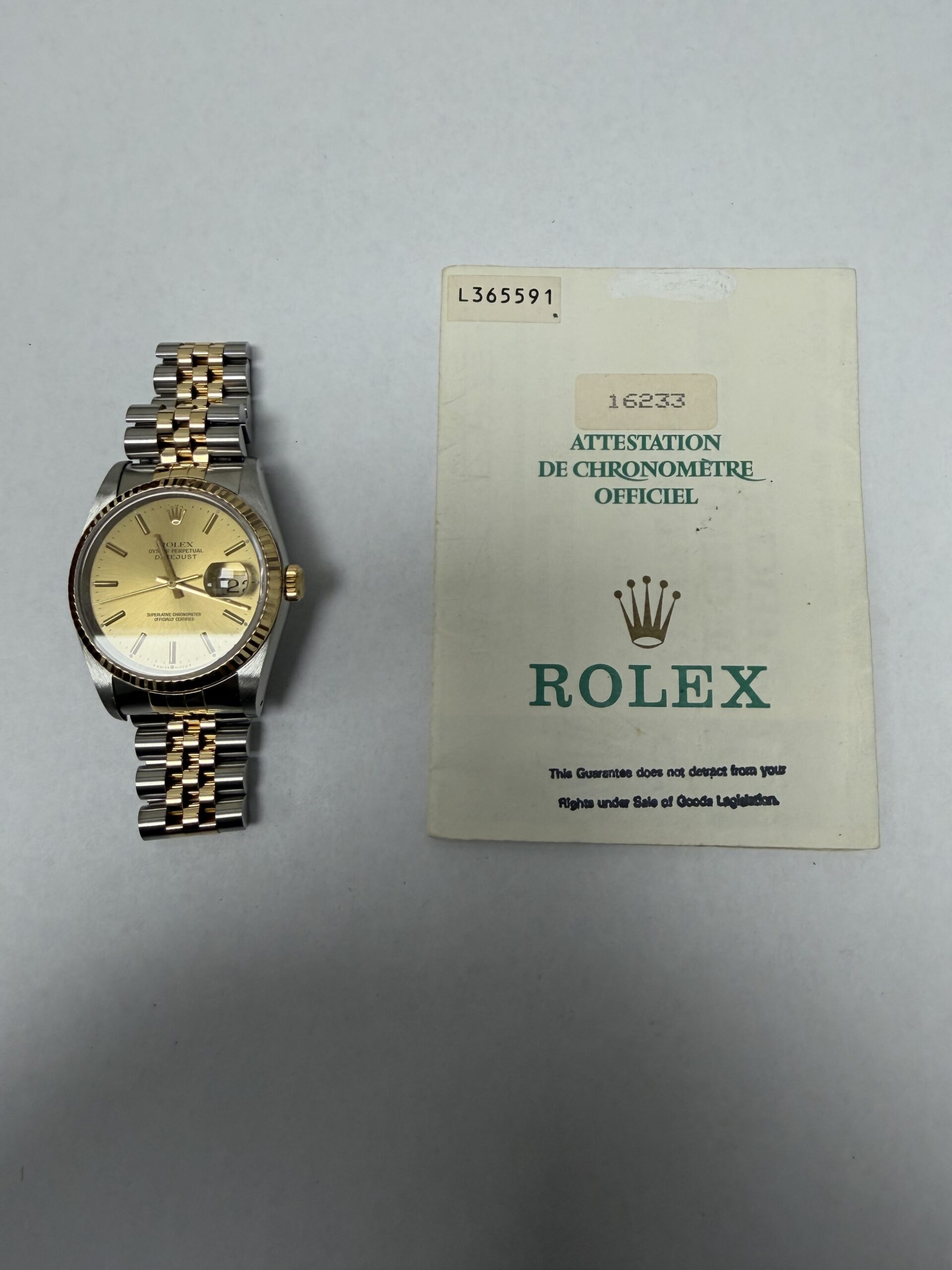 Rolex Datejust Champagne Stick Dial on Jubilee Ref 16233 with Papers 1992