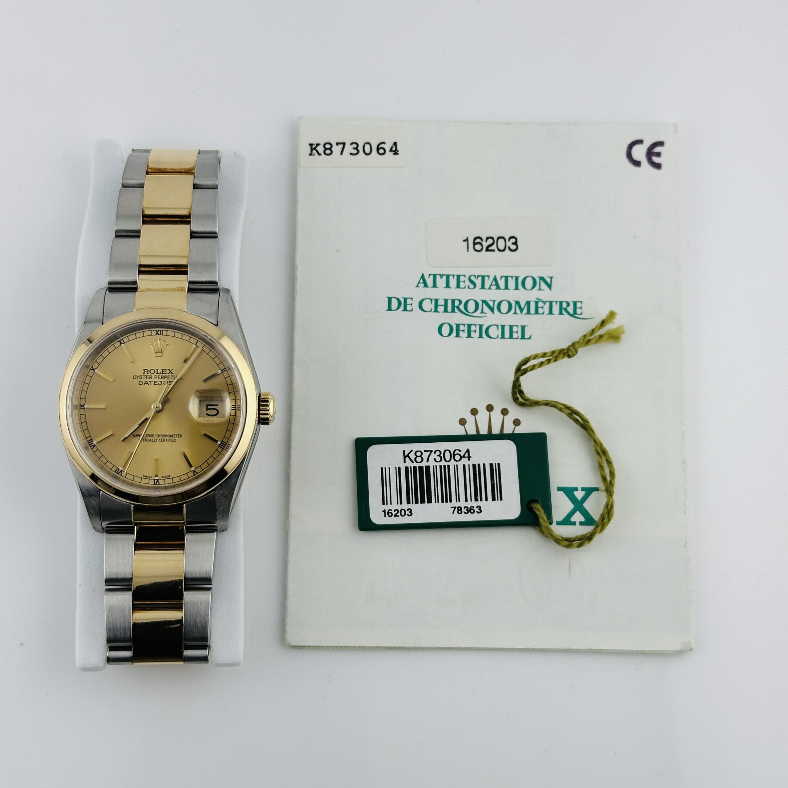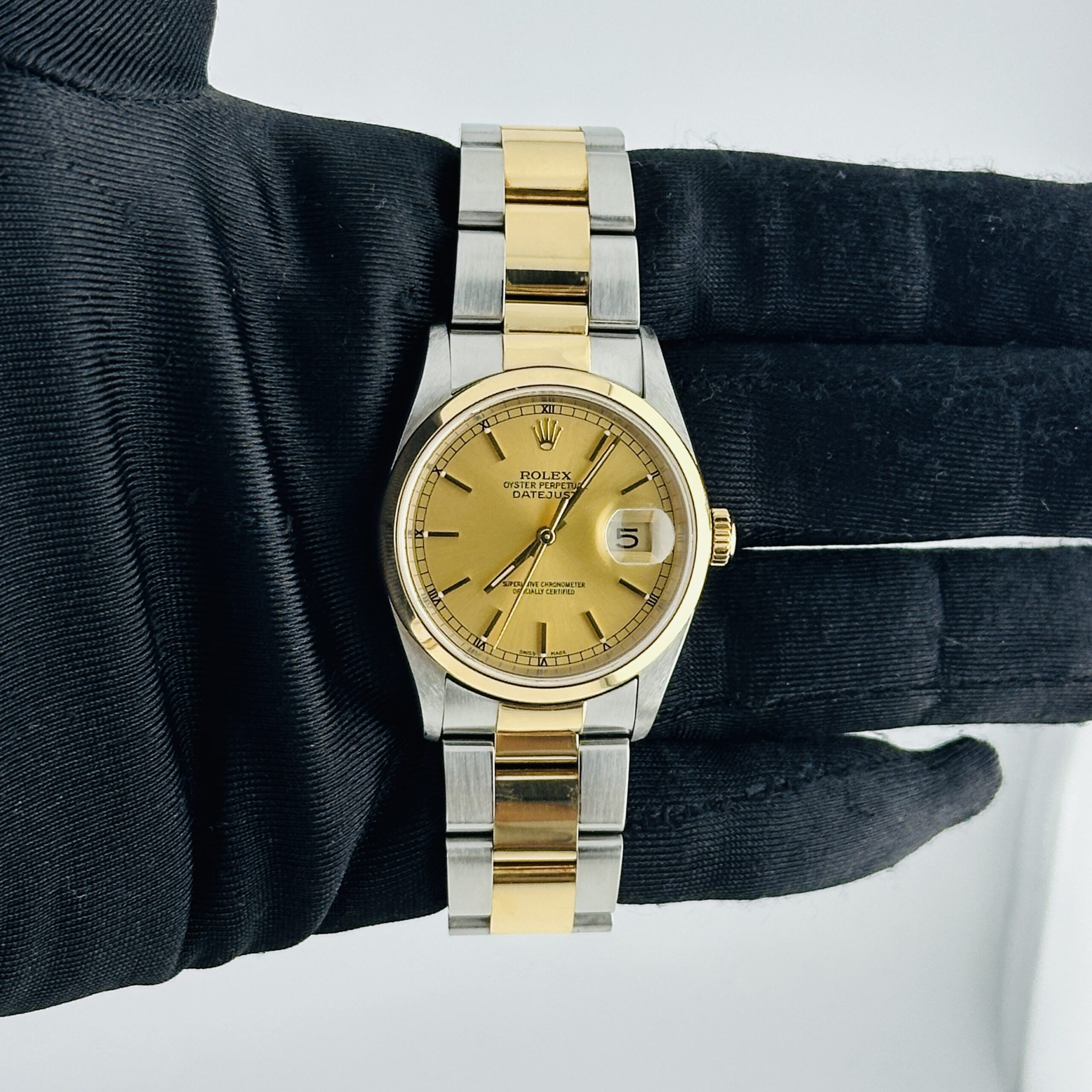 Rolex Datejust Champagne Stick Dial on Oyster Ref 16203 with Papers 2002