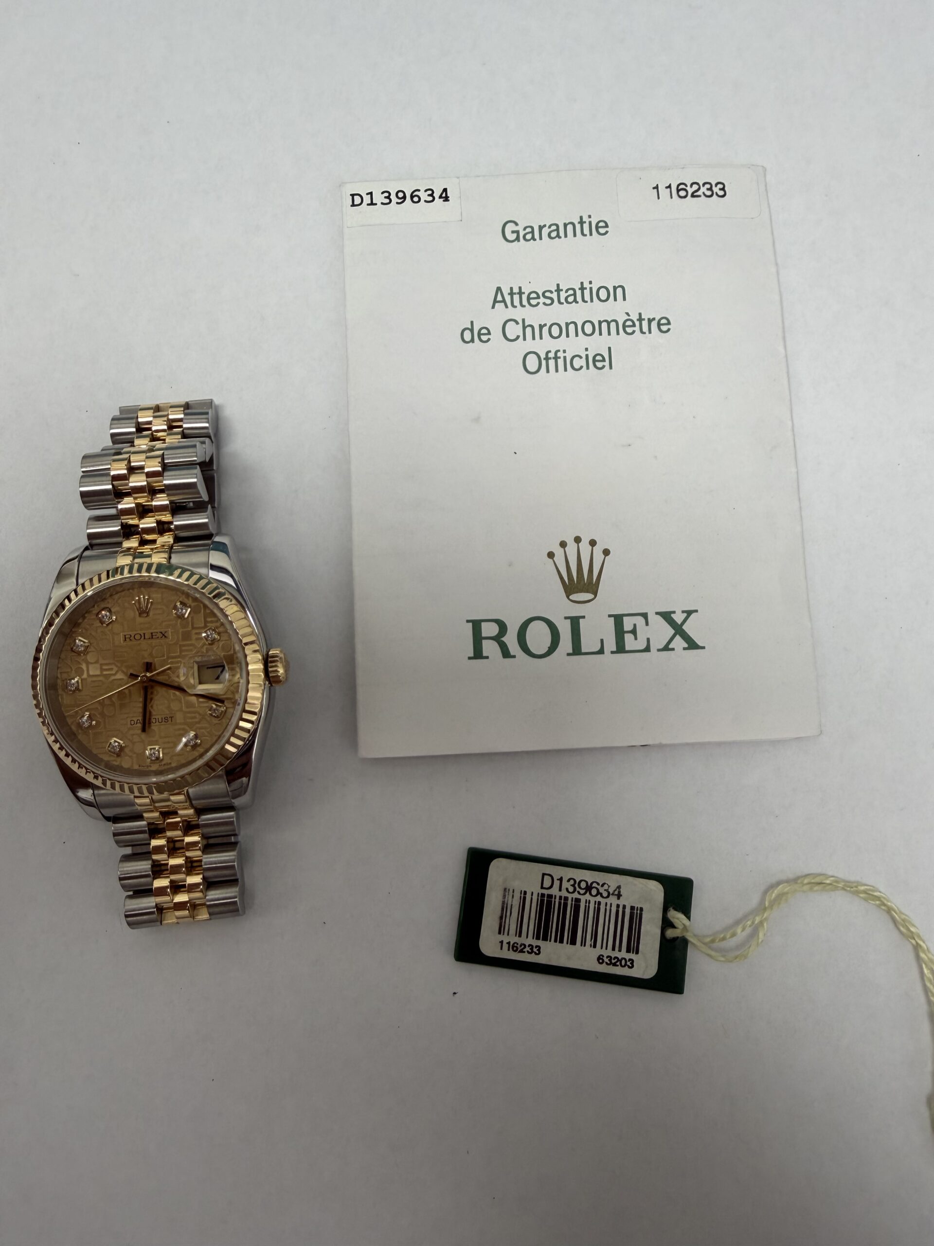 Rolex Datejust Gold Anniversary Diamond Dial Dial on Jubilee Ref 116233 with Papers 2006