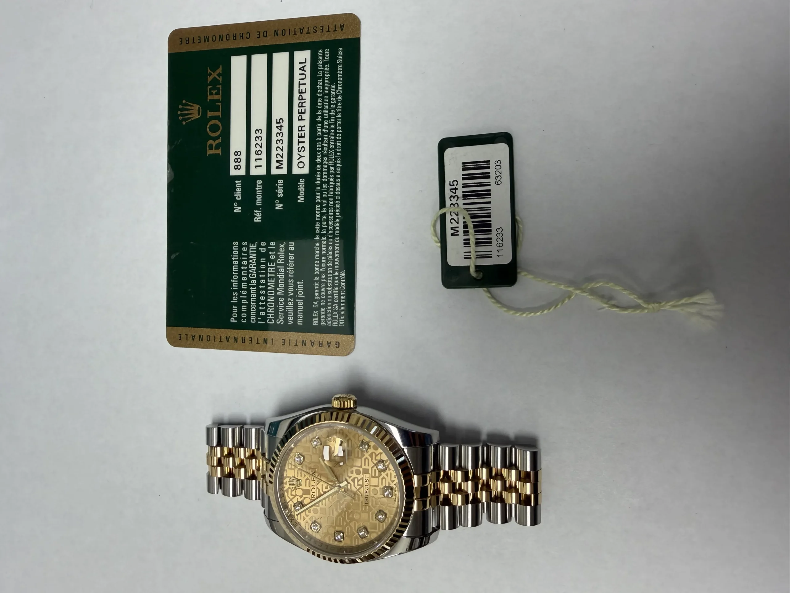 Rolex Datejust Gold Anniversary Diamond Dial Dial on Jubilee Ref 116233G with Card Old Green 2008
