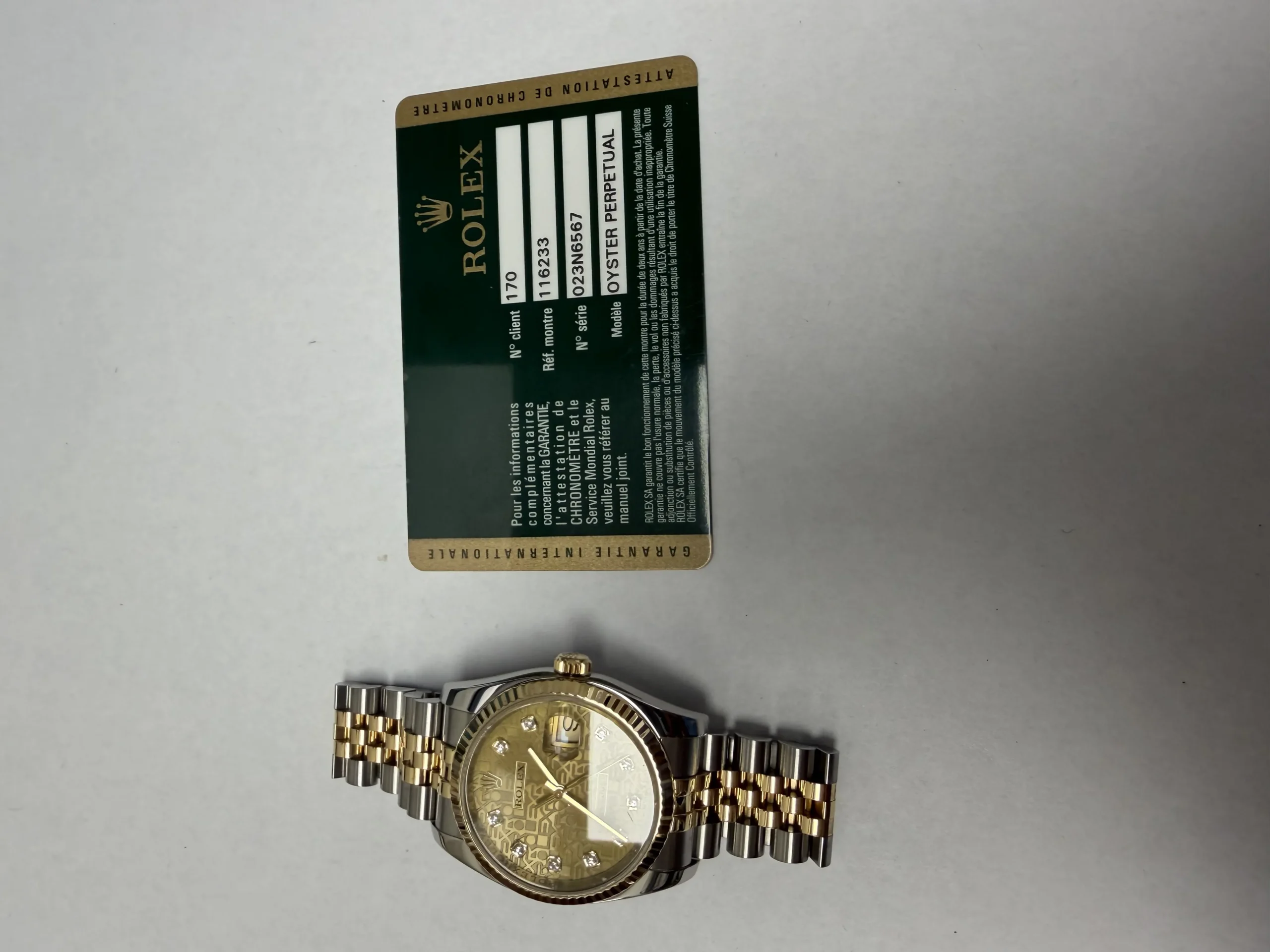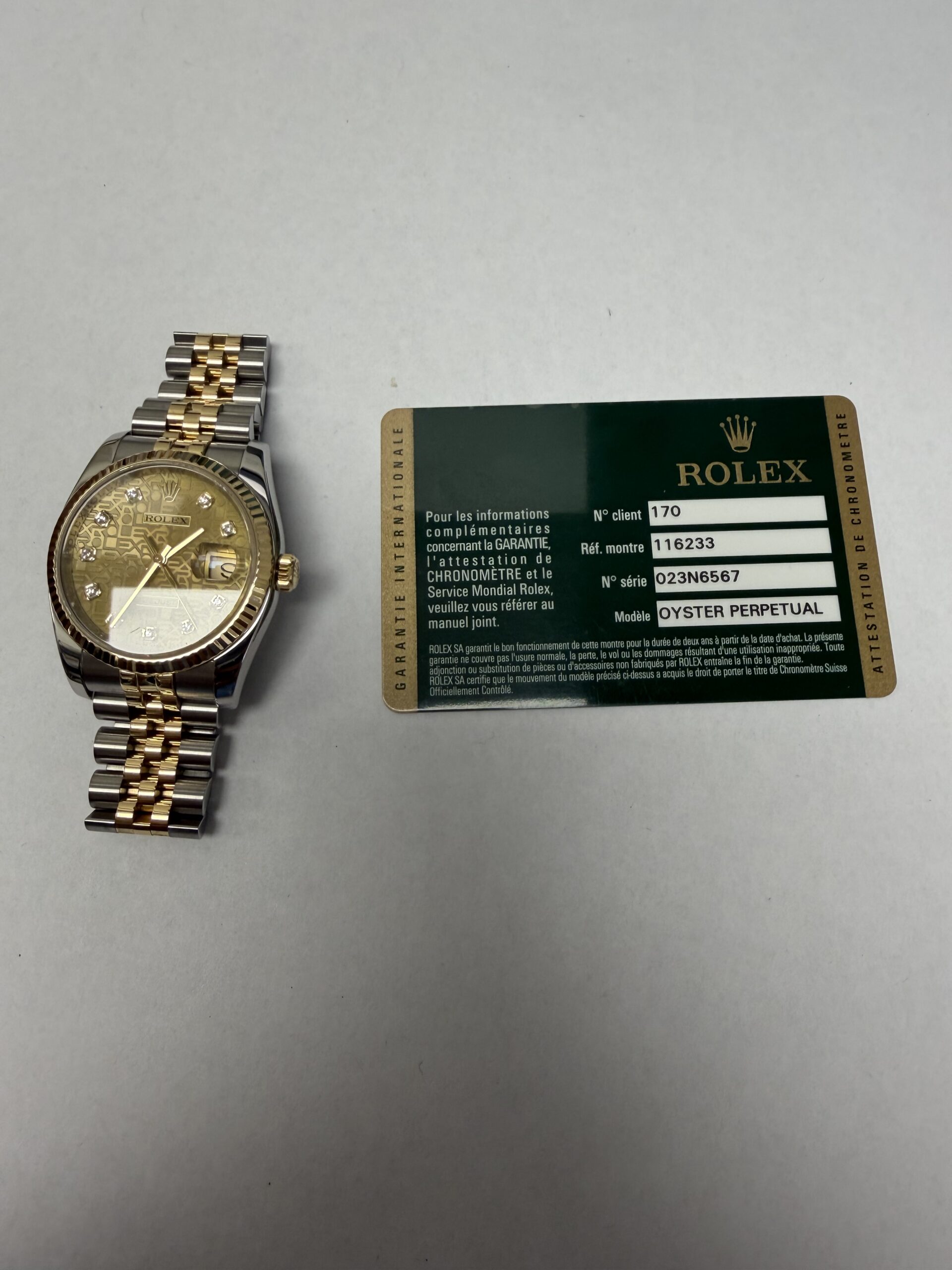 Rolex Datejust Gold Anniversary Diamond Dial Dial on Jubilee Ref 116233G with Card Old Green 2013