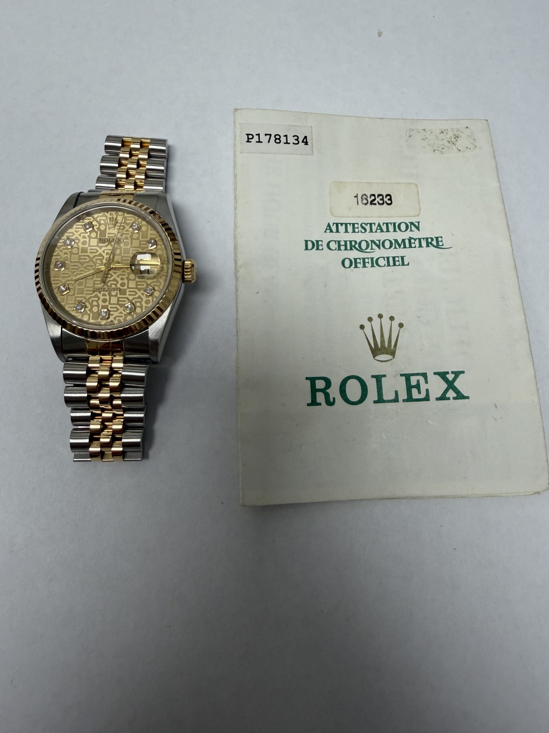 Rolex Datejust Gold Anniversary Diamond Dial Dial on Jubilee Ref 16233 with Papers 2000