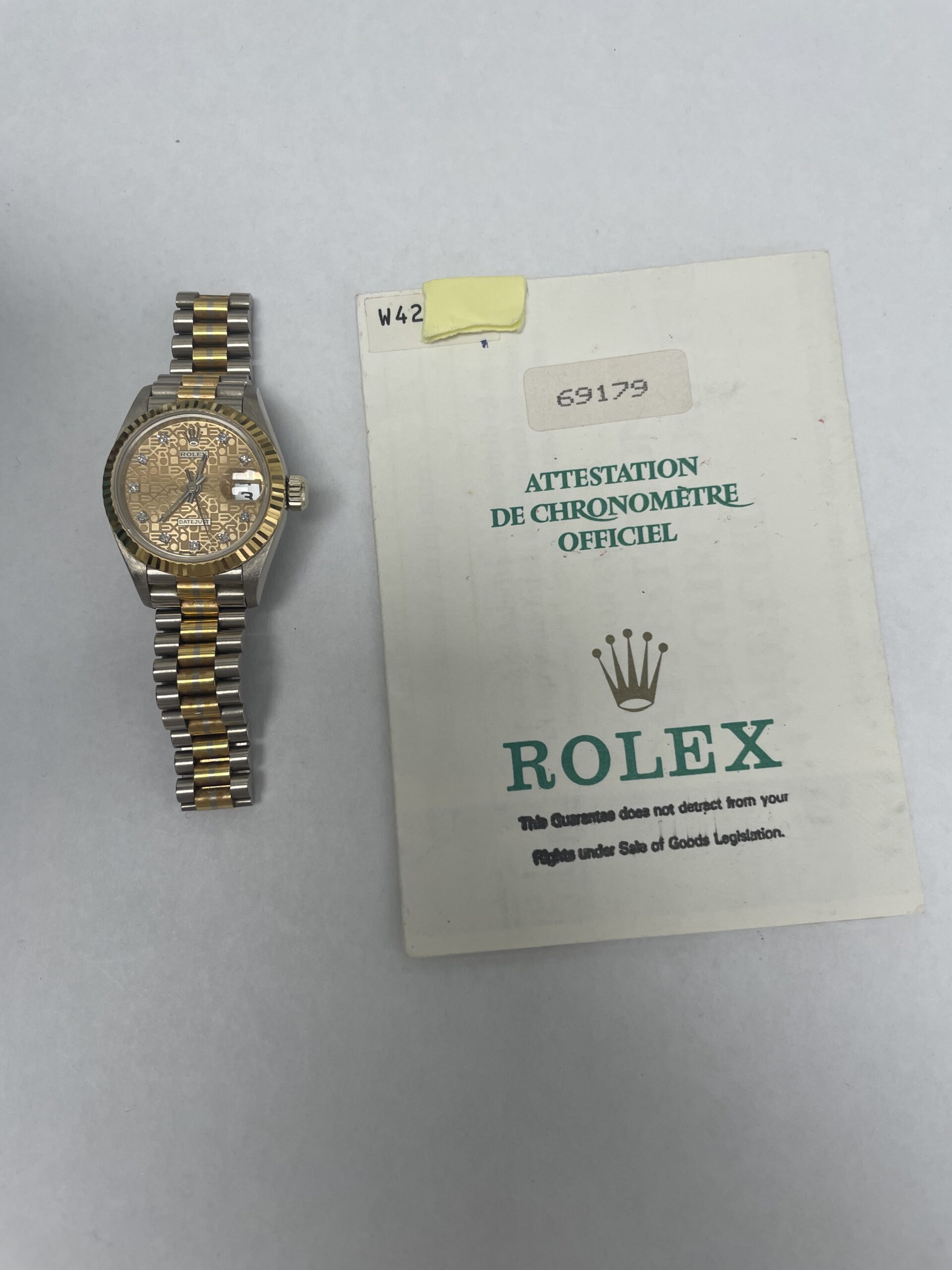 Rolex Datejust Gold Diamond Dial on President Ref 69179 with Papers 1994