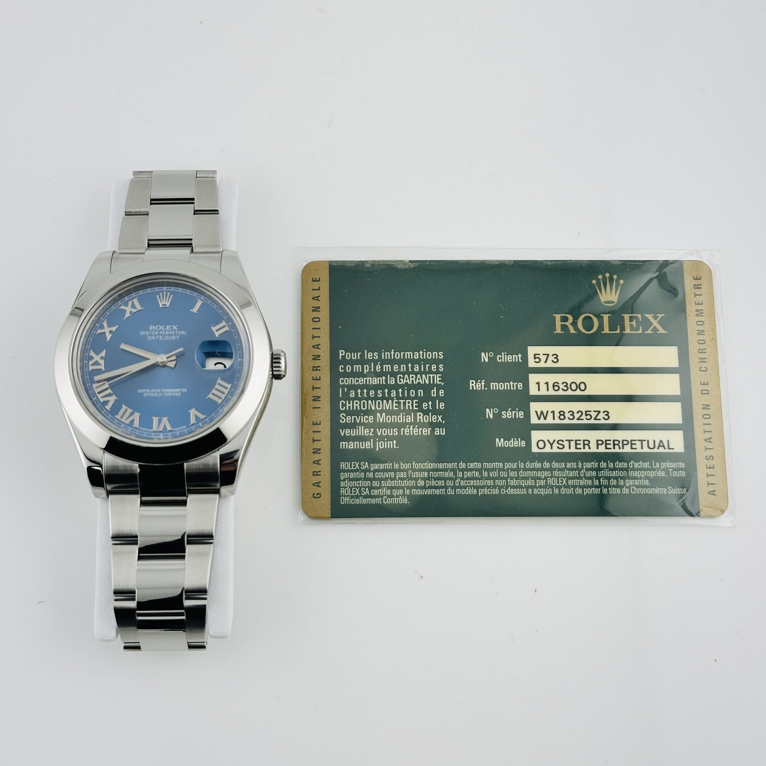 Rolex Datejust II Blue Roman Dial on Oyster Ref 116300 with Card Old Green