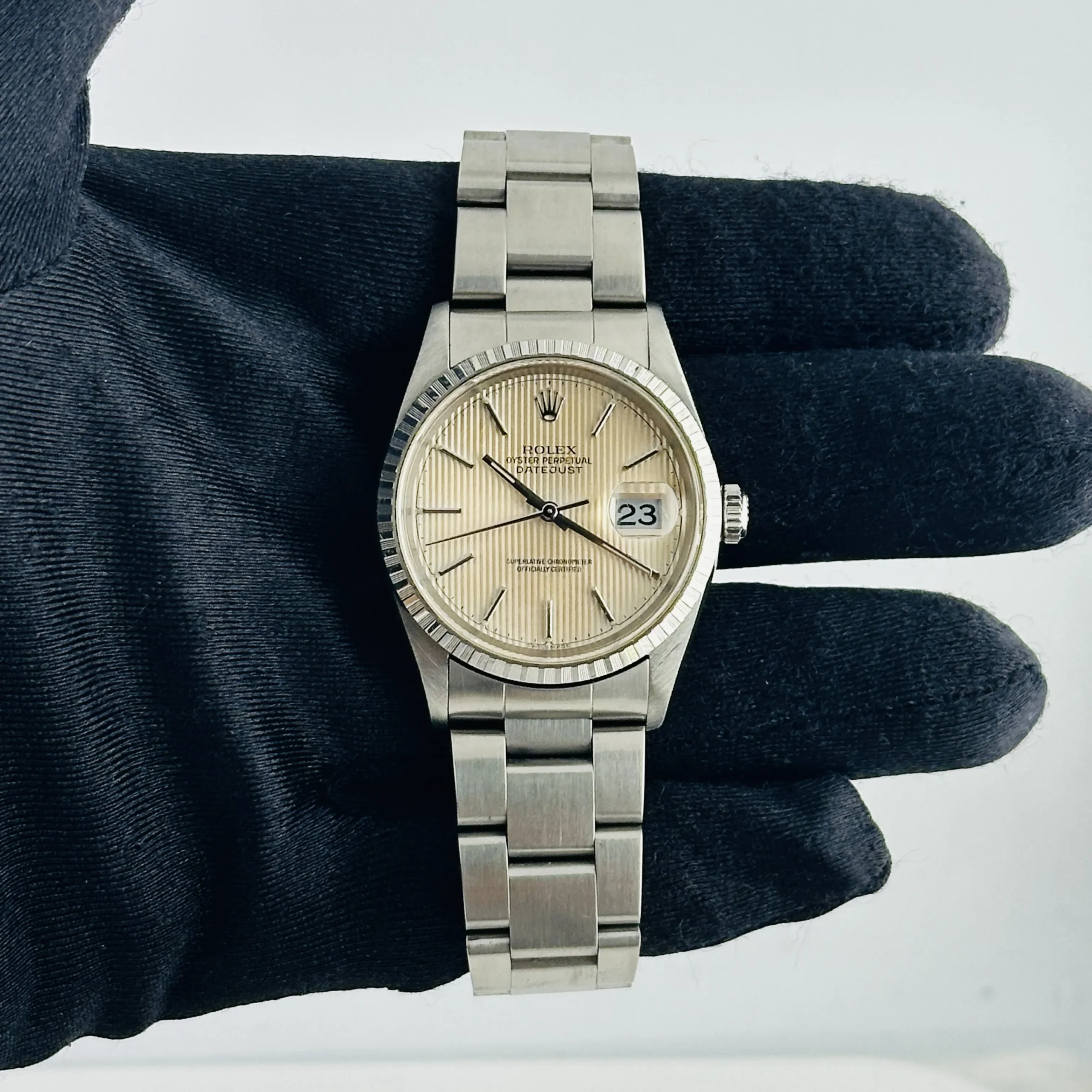 Rolex Datejust Ivory Tapestry Dial on Oyster Bracelet Ref 16220