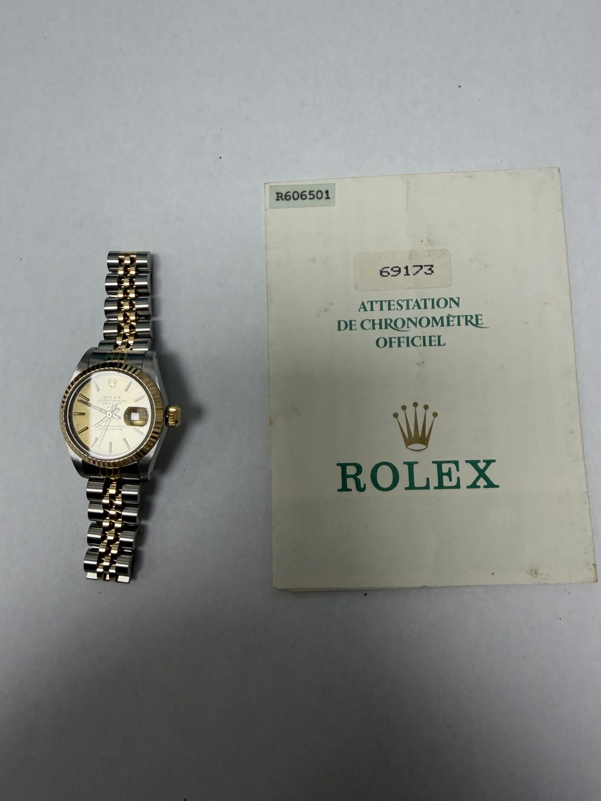 Rolex Datejust Lady Champagne Stick Dial on Jubilee Ref 69173 with Papers 1988