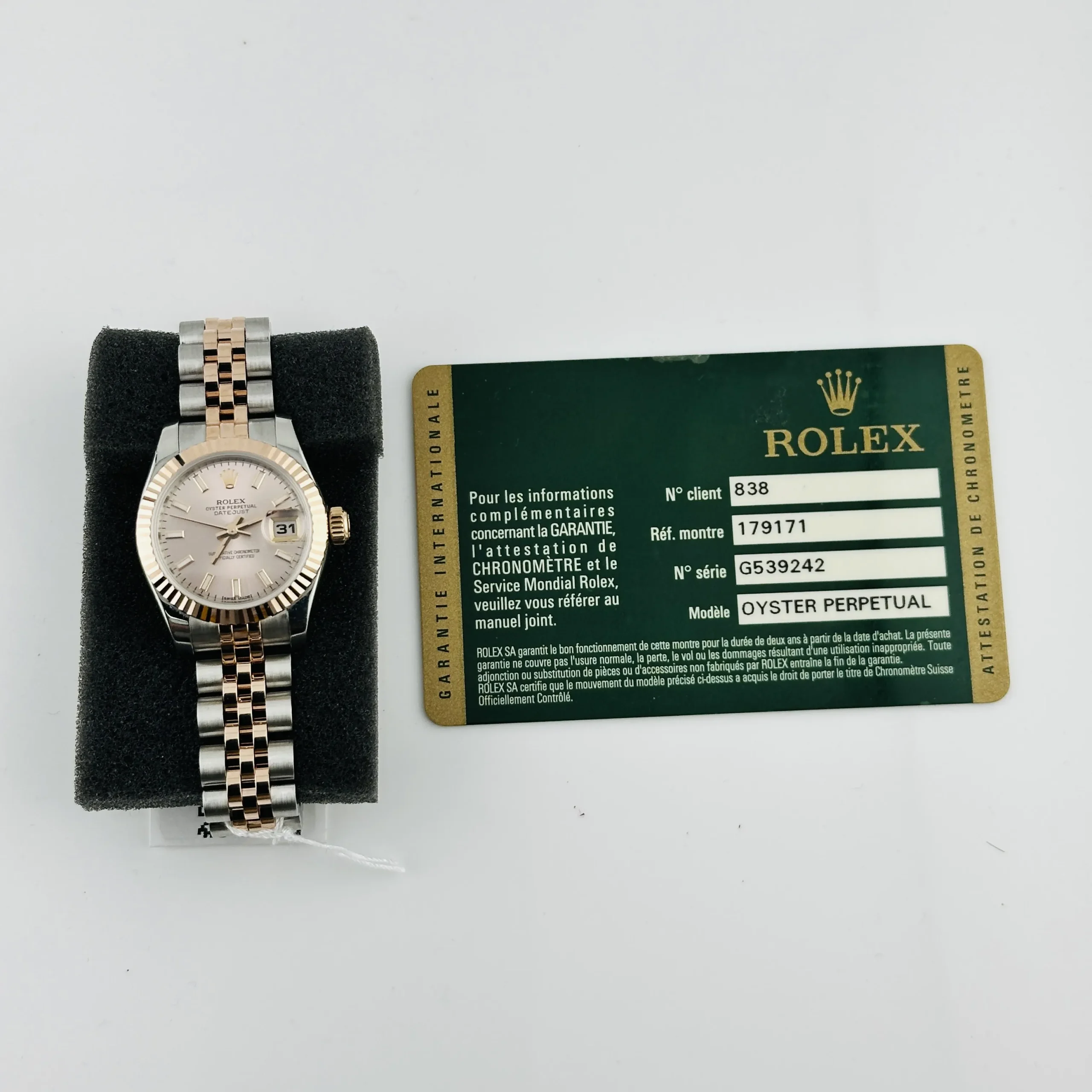 Rolex Datejust Lady Pink Stick Dial on D Link Jubilee Ref 179171 with Card Old Green 2015