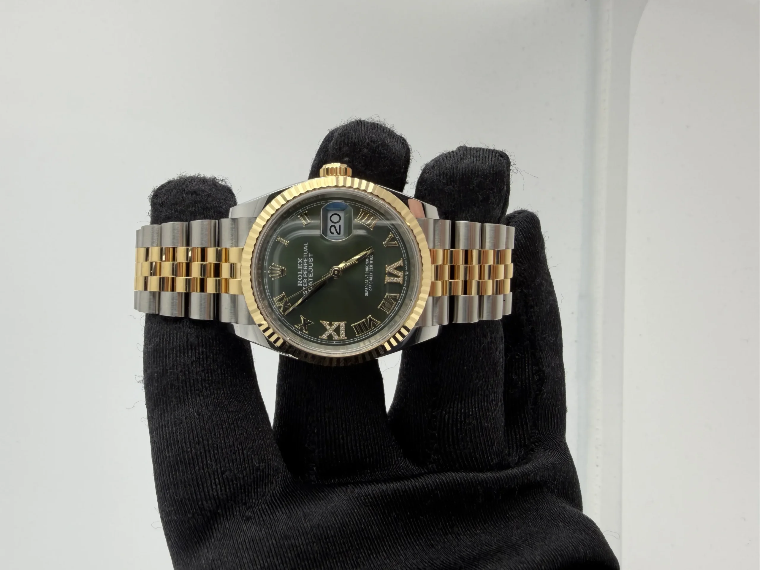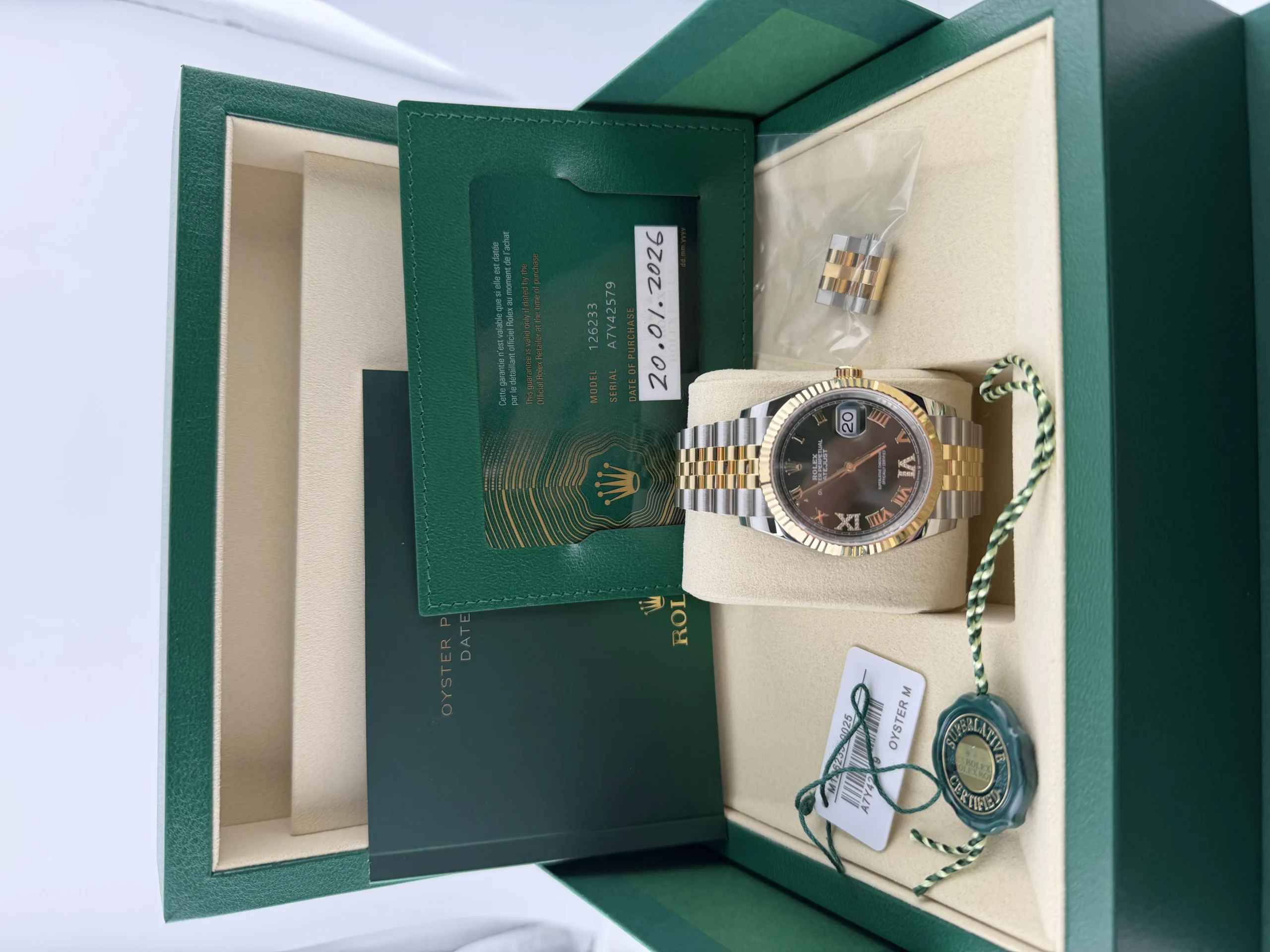 Rolex Datejust Olive Green Roman Dial on Jubilee Ref 126233 with New Style Card Green 2026