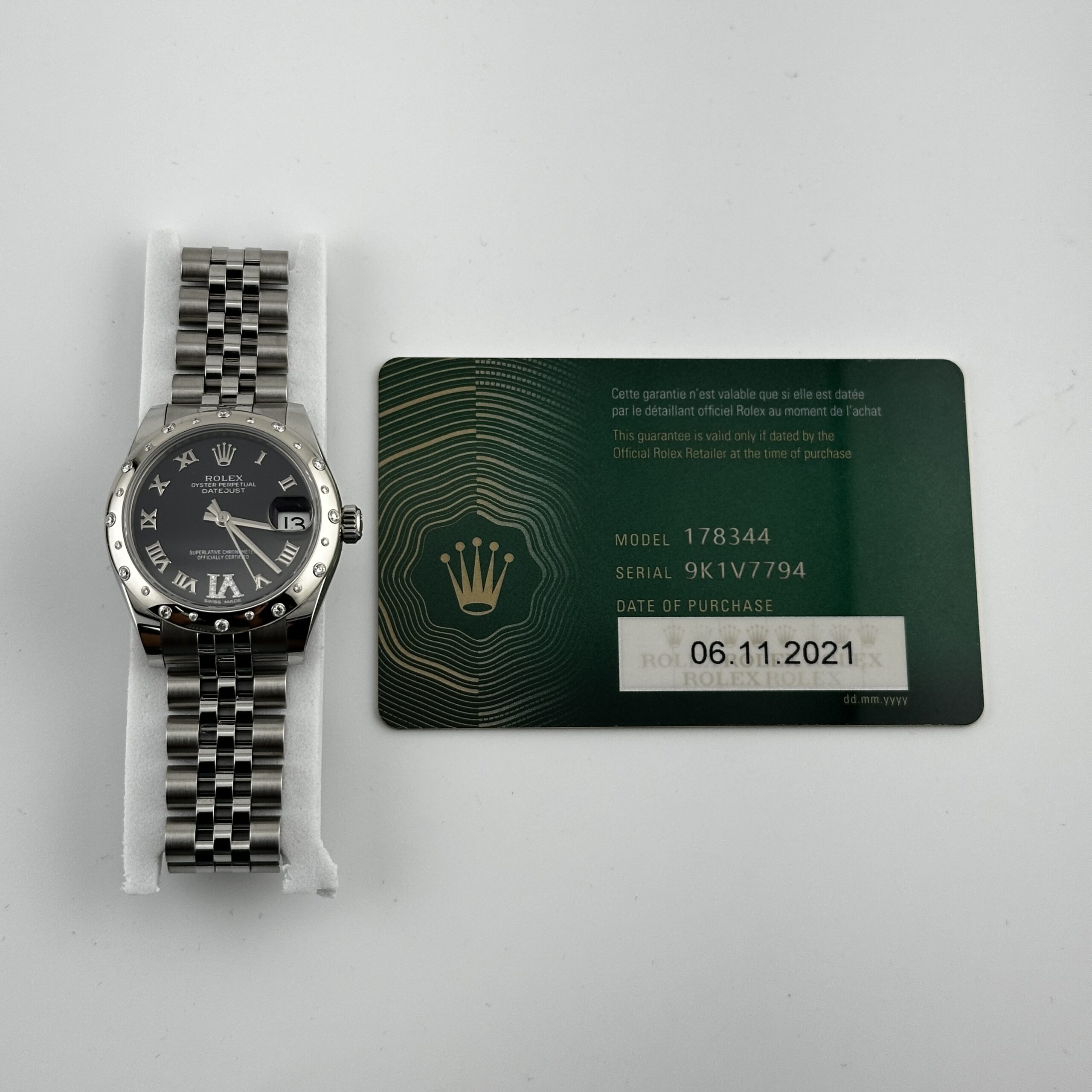 Rolex Datejust Purple Roman Dial on Jubilee Ref 178344 with New Style Card Green 2021